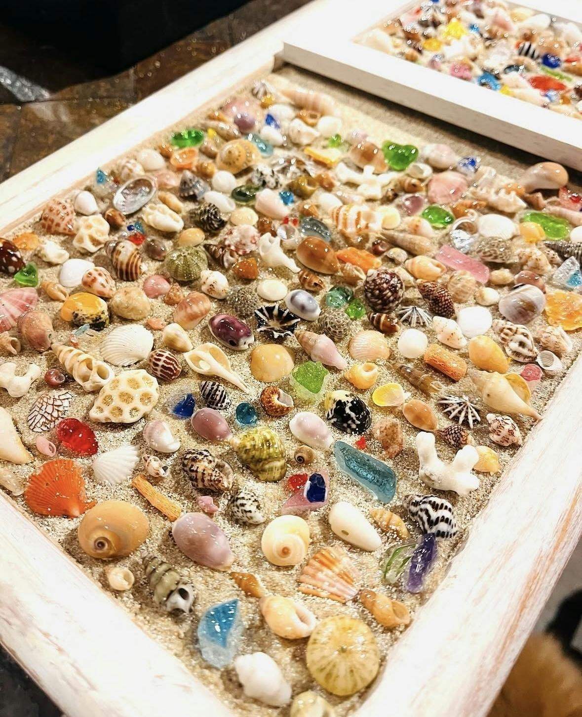 私は実は物作りが大好きでして、タラチネ開拓が始まる前は貝殻拾いに夢中になり(今も夢中)バイクで海岸線を、時には飛行機に乗って南の島まで貝殻を求めて、貝殻のヒットがありそうな海岸を見つけては立ち寄り貝拾いをし、それを作品にしたりしていました。