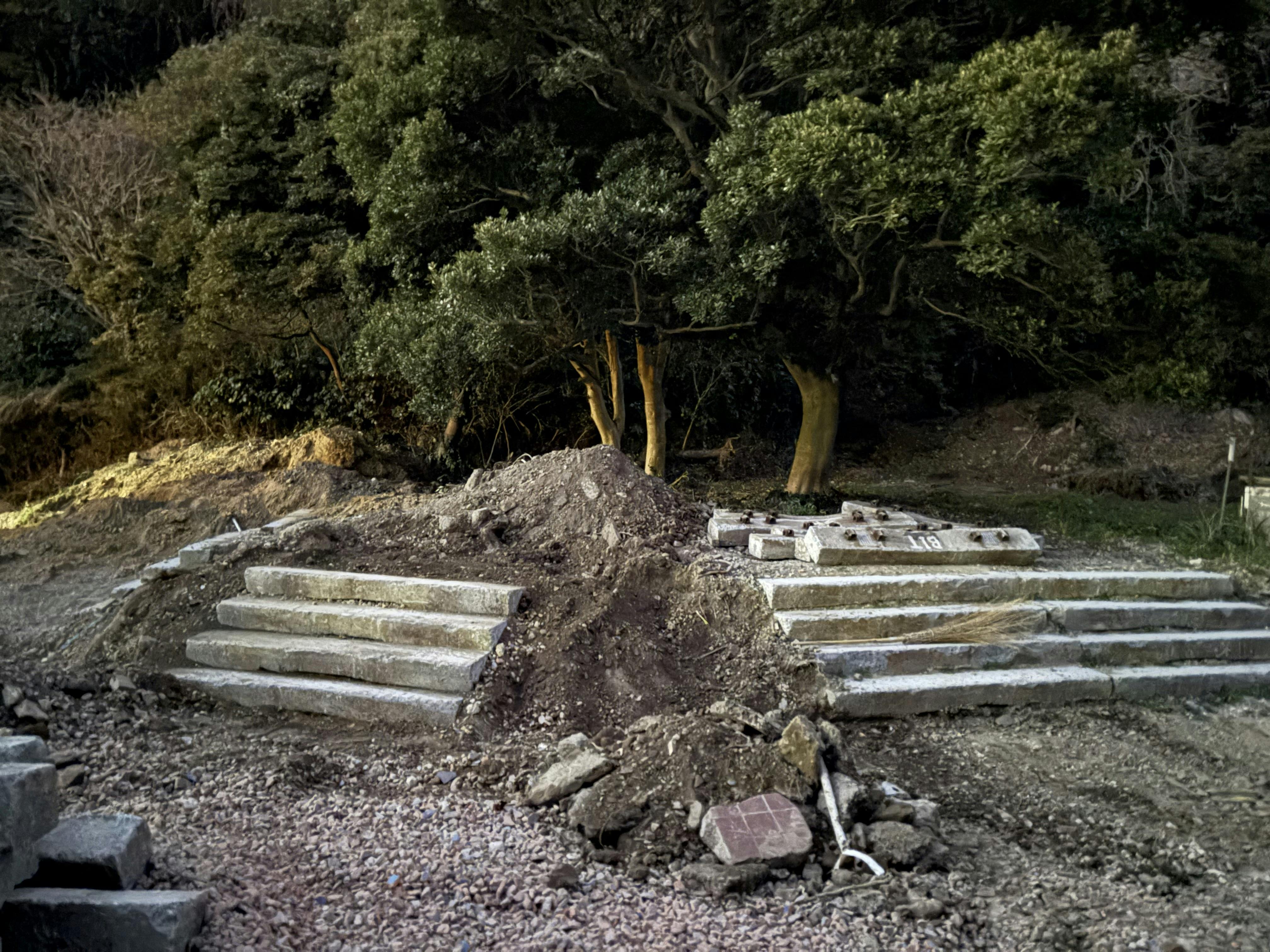 画像は完成した階段。真ん中の階段の両脇は植栽にする予定です。何を植えようか今から楽しみ!