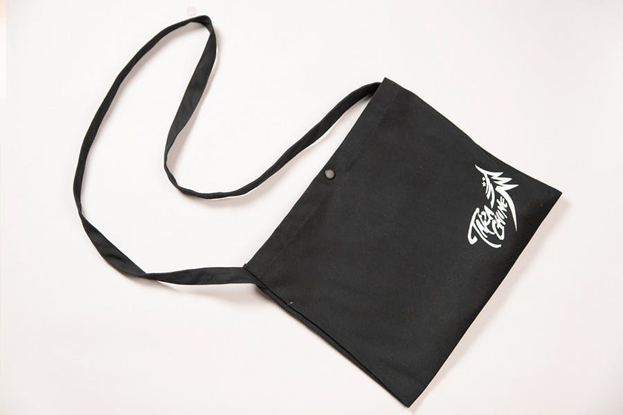 ●Tarachineロゴ入りキャンプファイヤー限定サコッシュ キャンバス地 幅30㎝×高さ24㎝ ショルダーの長さ 100㎝ ¥3,000
