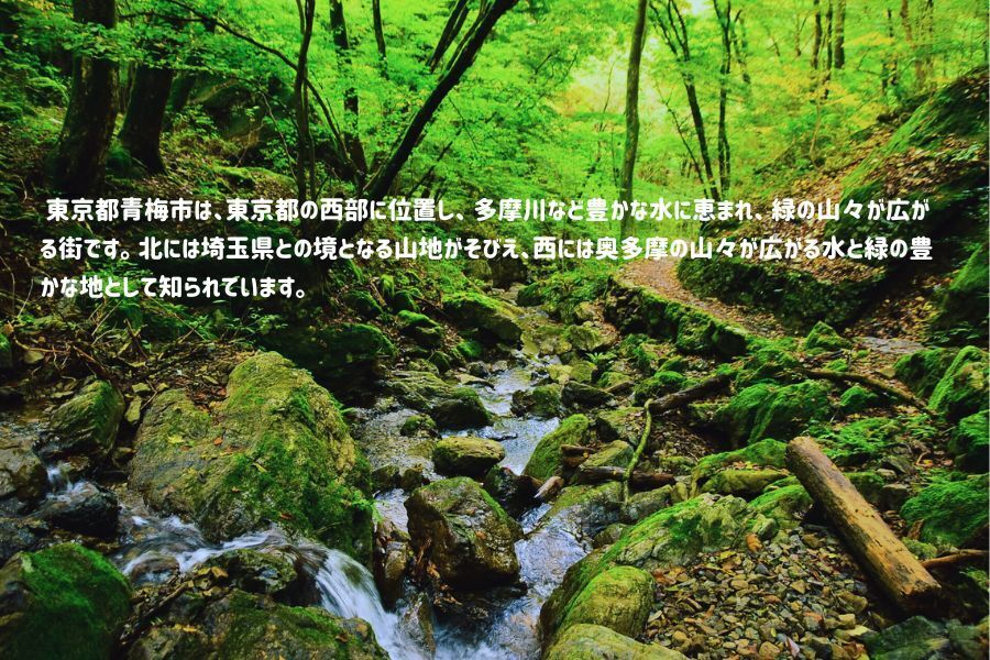 青梅市は、東京都の西部に位置し、都心から電車で約1時間というアクセスながら、豊かな自然に恵まれたエリアです。市域の中央を多摩川が東西に貫流し、北には奥多摩の山々、南には多摩丘陵が広がる水と緑の豊かな地で、「東京の奥座敷」とも呼ばれています。