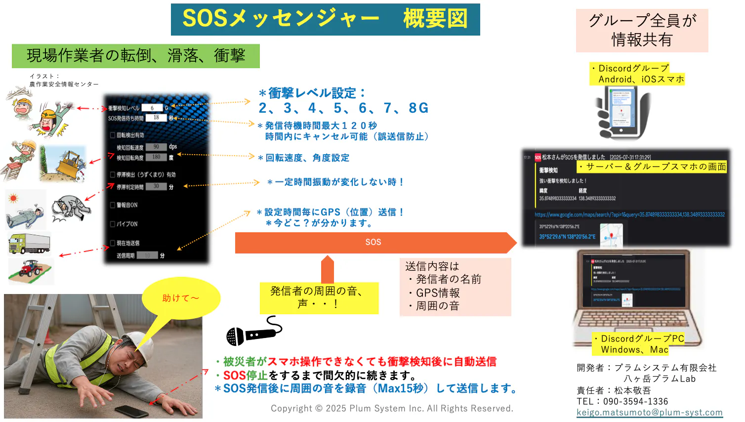 SOS Messengerは、数千万円の重機よりも、企業の存続よりも、「人命」という最も大切なものを安価に守るための技術です。