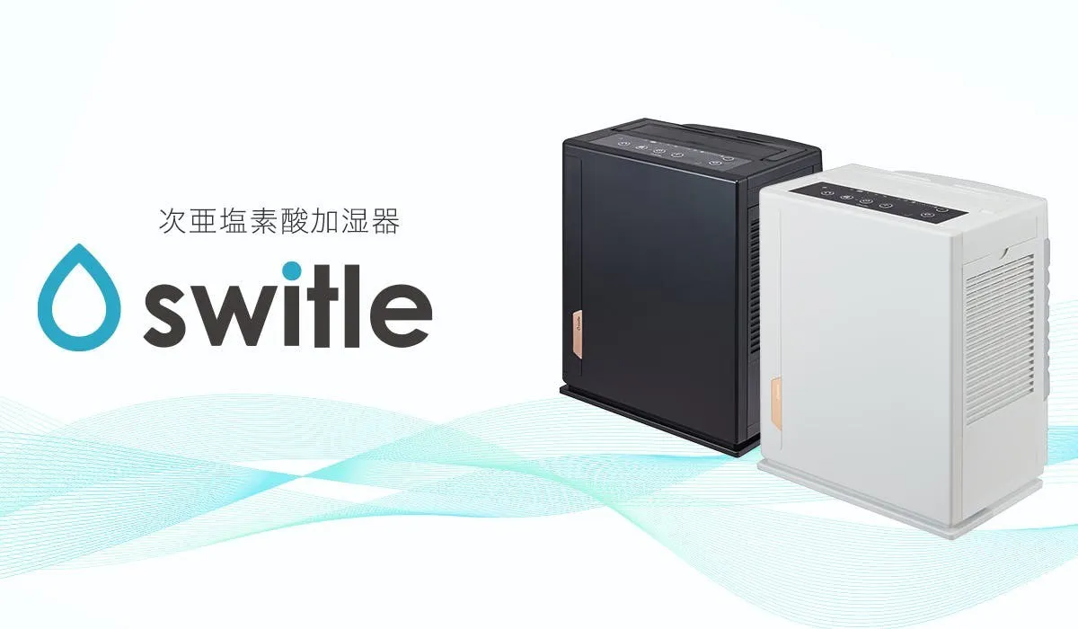 シリウスの次亜塩素酸 気化式加湿器switle(スイトル)は、当社独自の次亜塩素酸の生成技術を用い、
