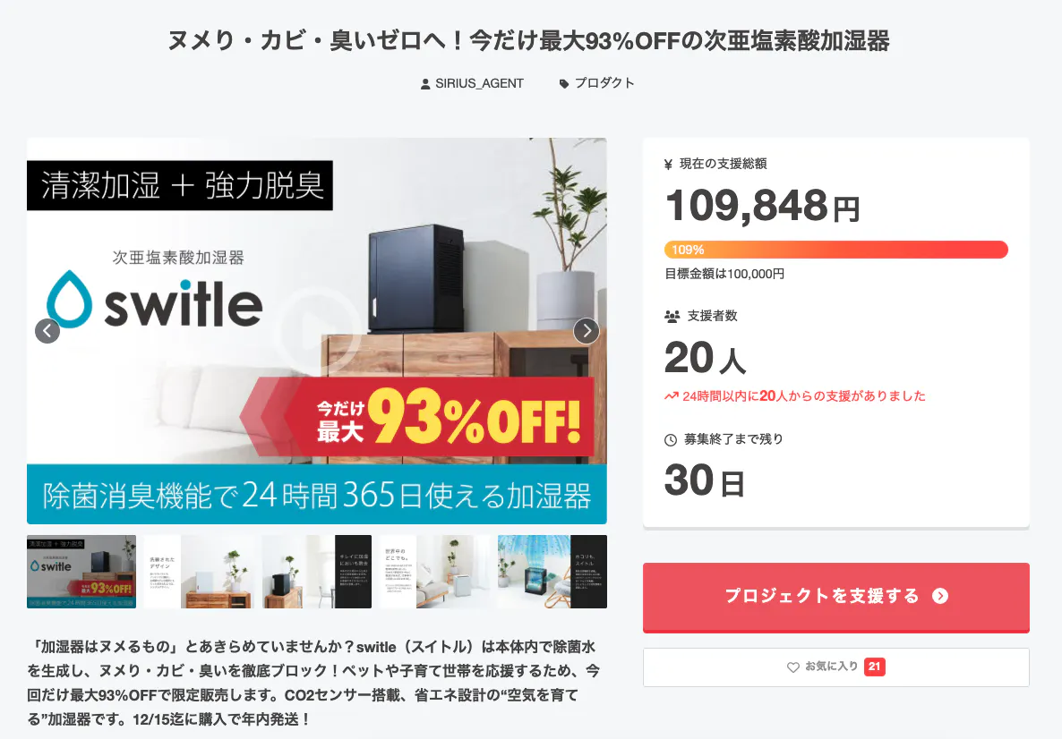 プロジェクト開始してから、わずか2時間足らずで無事に目標金額を達成することができました!