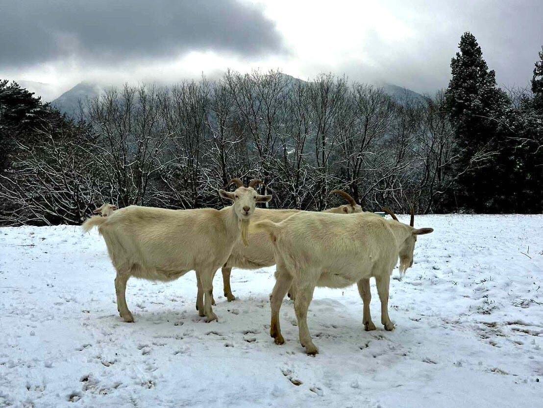 そこでは、かわいい子やぎたちが元気に走りまわっていて、「数年後にはやぎミルクを使ったチーズやヨーグルトなどをつくって、牧場としたい」との考えをお聞きし、ドルチェかがみの思いをお伝えしたところ、やぎミルクが出荷できる準備が整い次第、仕入れをさせてもらえることとなりました。