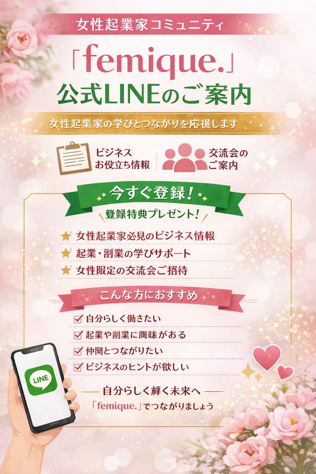 私たちは、「女性の生き方が世界を変える!」をテーマに、より自分らしさを発揮して、人や社会に貢献したい願う女性たちの、学びと挑戦を応援する共感型WEBメディア&コミュニティ「femique.(フェミーク)」の事務局です