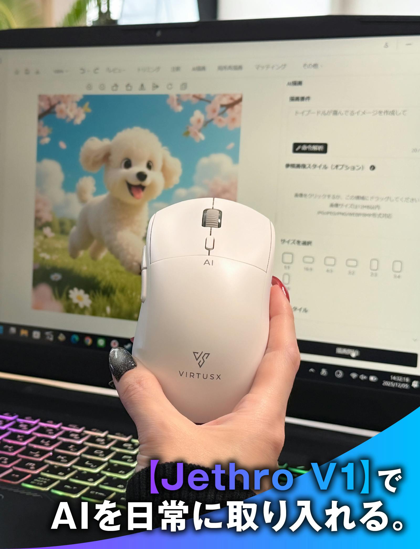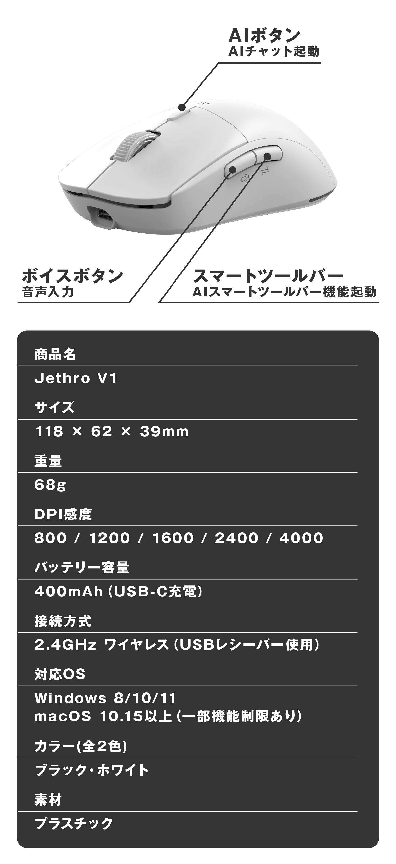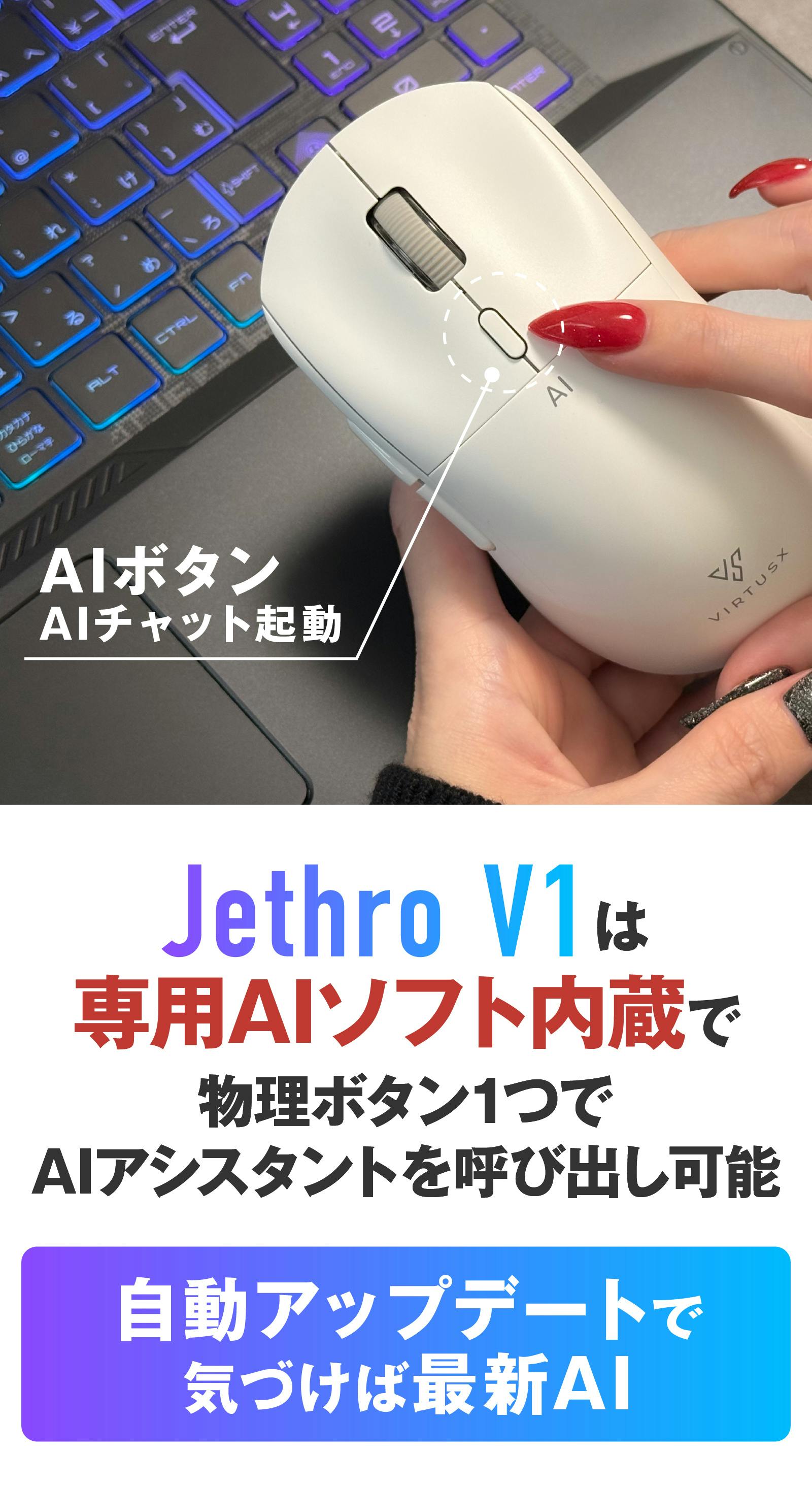 「もっとシンプルに、誰でも迷わずAIを使えたらいいのに」その想いから生まれたのが、Virtusx Jethro V1 AIマウスです。