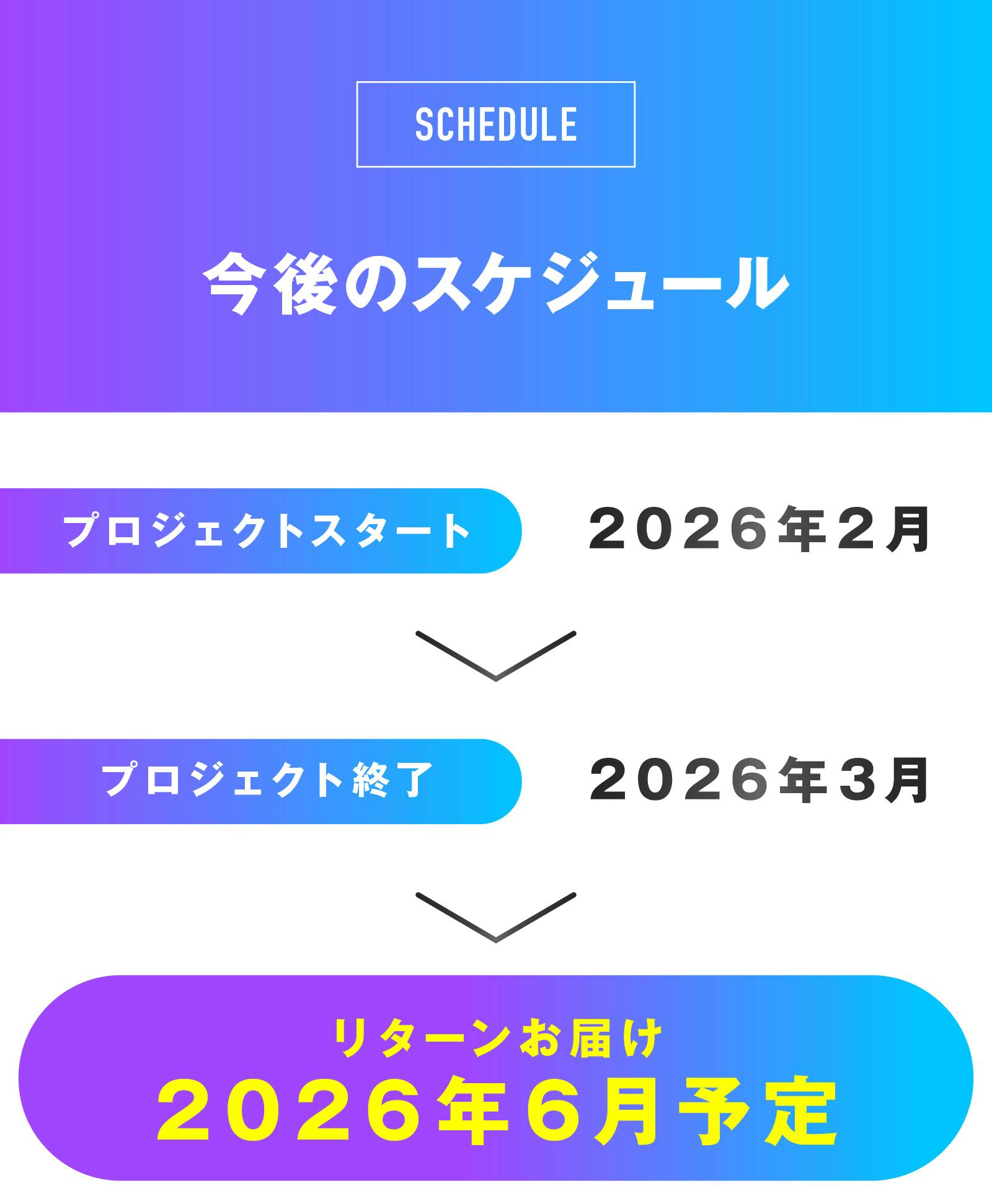 ※本文中に記載させていただいたスケジュールは、あくまでプロジェクト公開時点の予定です。支援の性質上、配送遅延のおそれがございます。