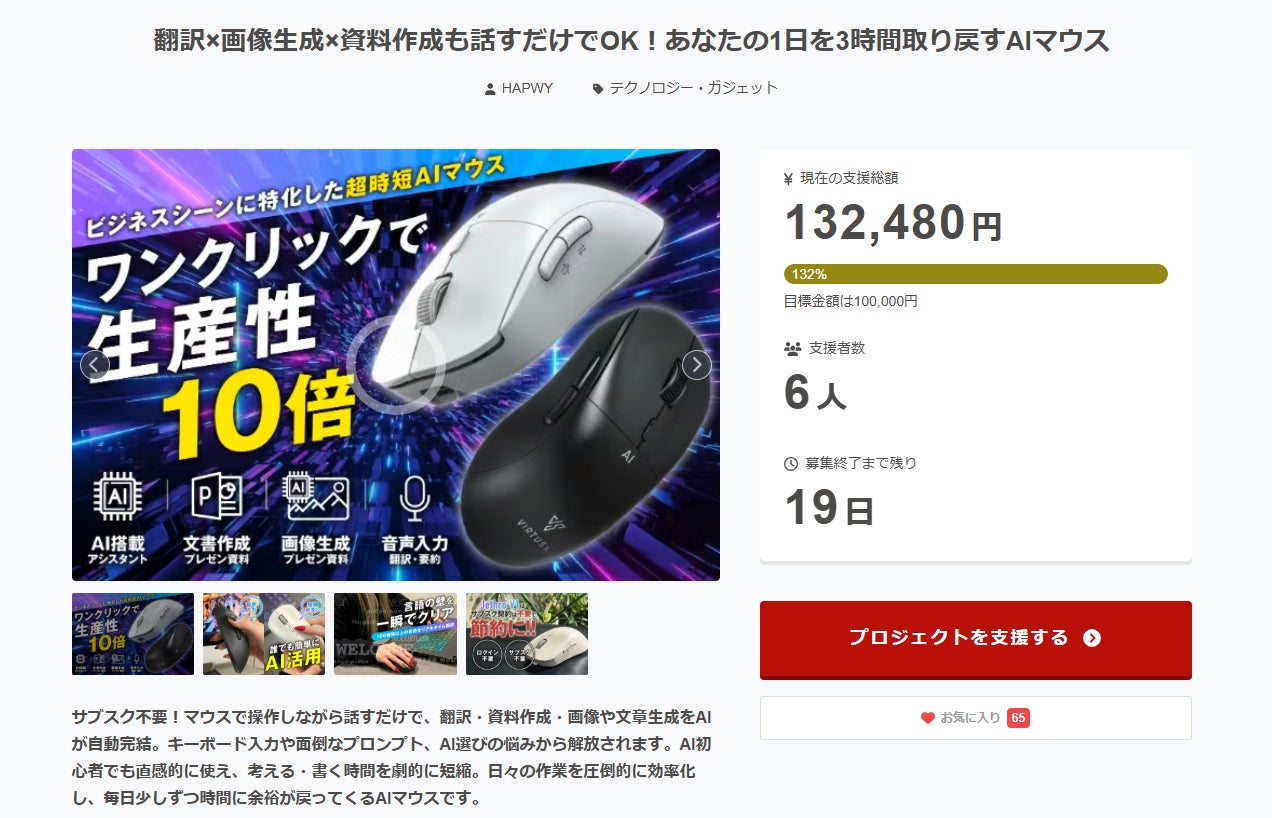 この度は「Virtusx Jethro V1 AIマウス」プロジェクトをご支援いただき、誠にありがとうございます。