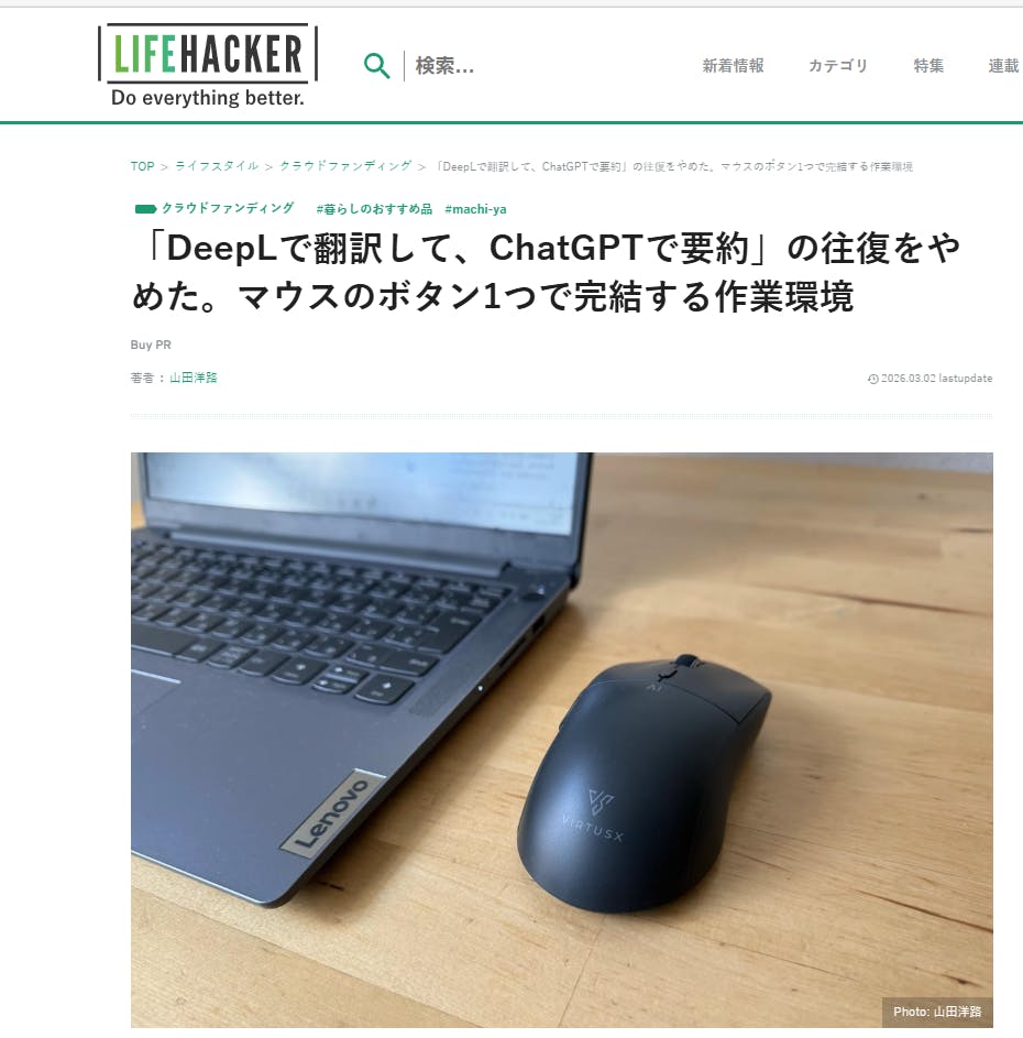 この度、ビジネスメディア Lifehacker(ライフハッカー) にて、
