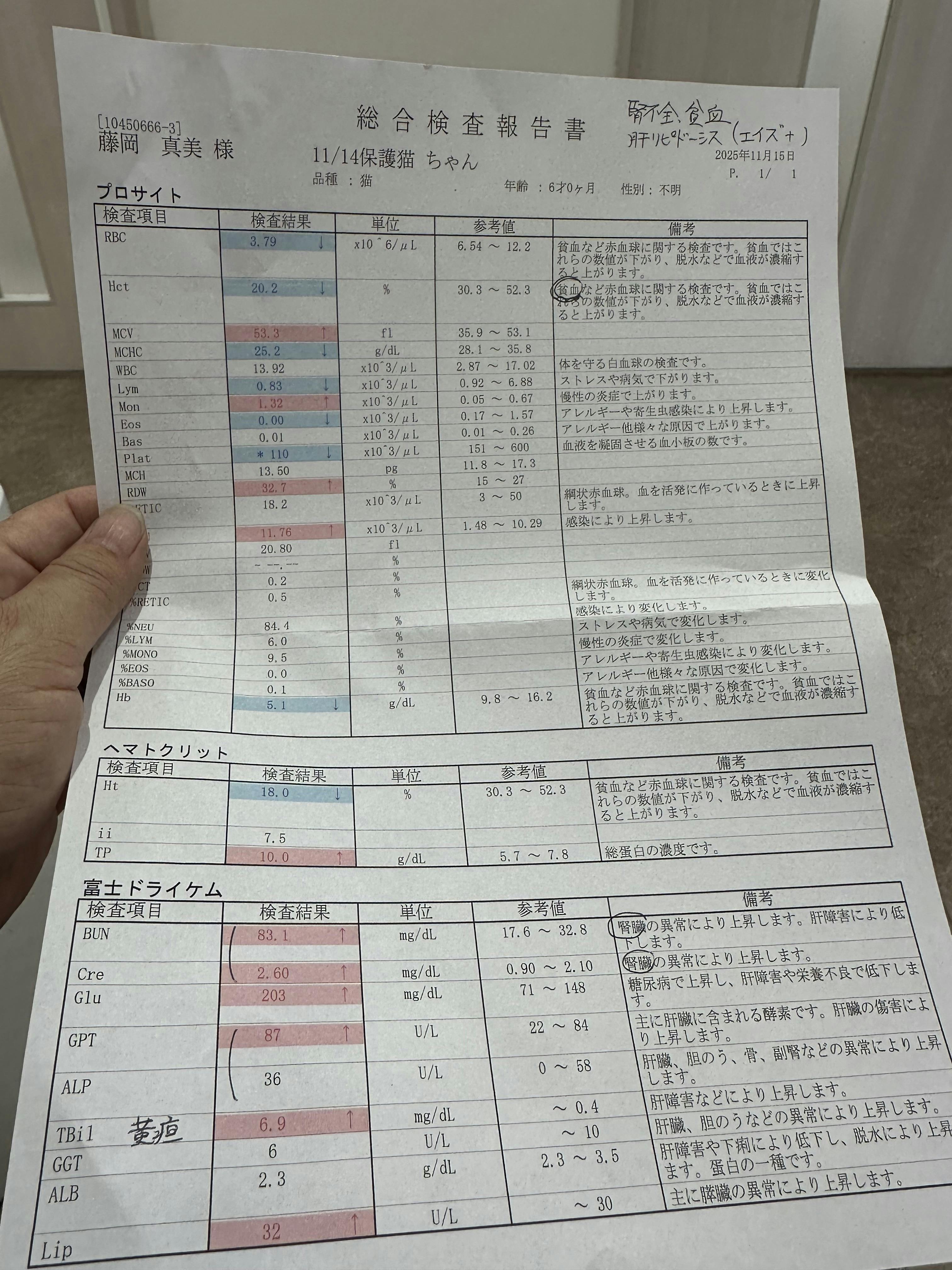 4時間待ちでしたが診てもらい腎不全、貧血、などで入院することになりました