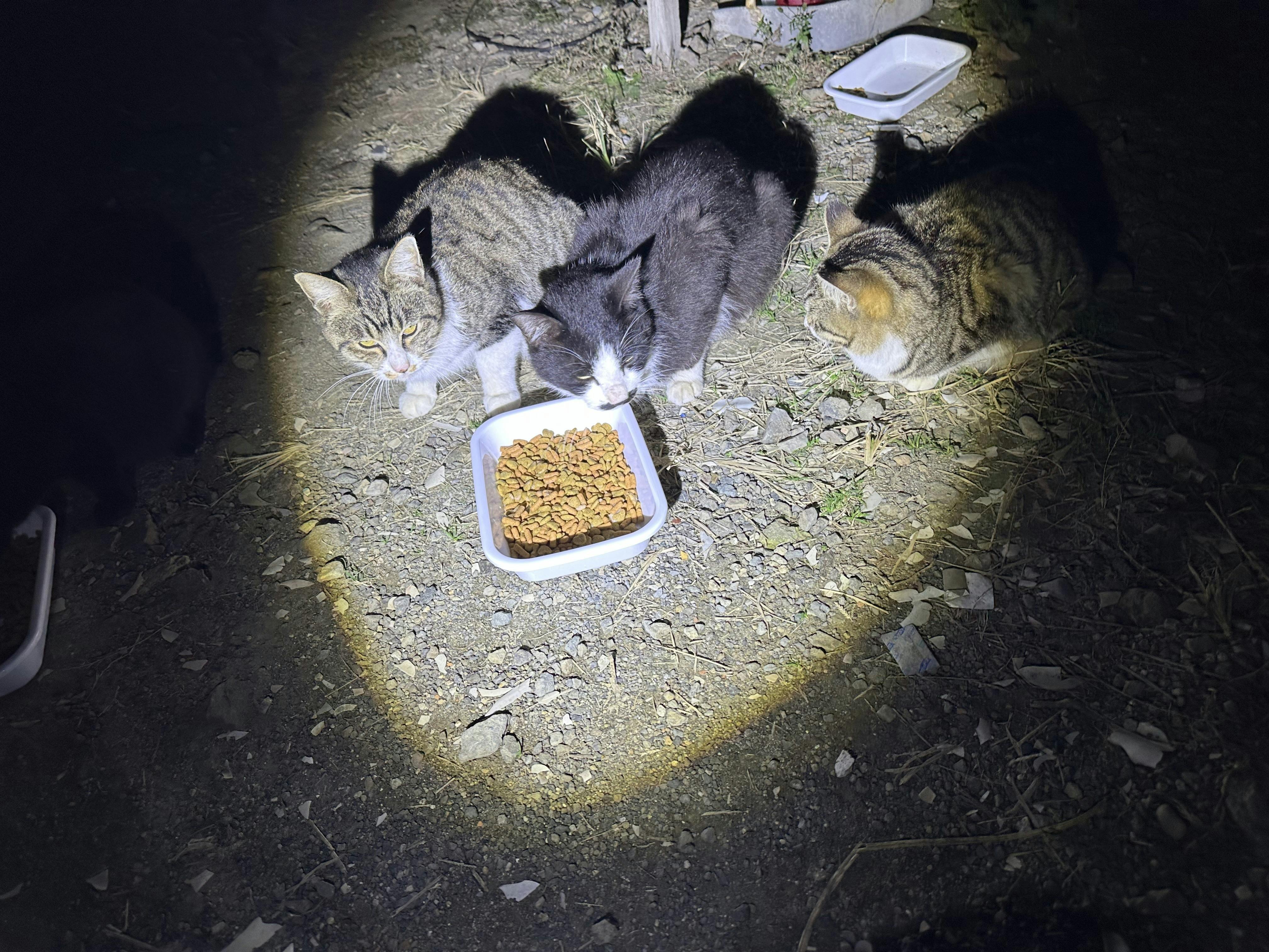 この子達の餌やりしてる人が入院してしまってご飯を食べれてないといいます
