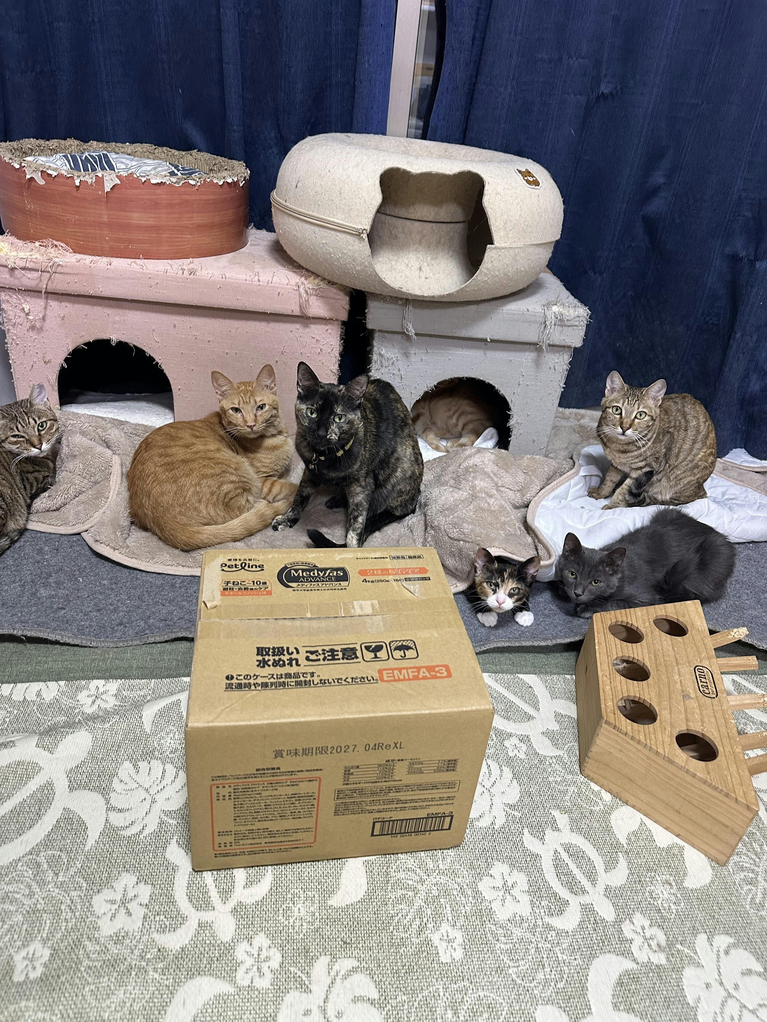 タワーやキャットウォークがないので過ごしにくいかもしれないけど外の寒さからは守ってあげられると思います