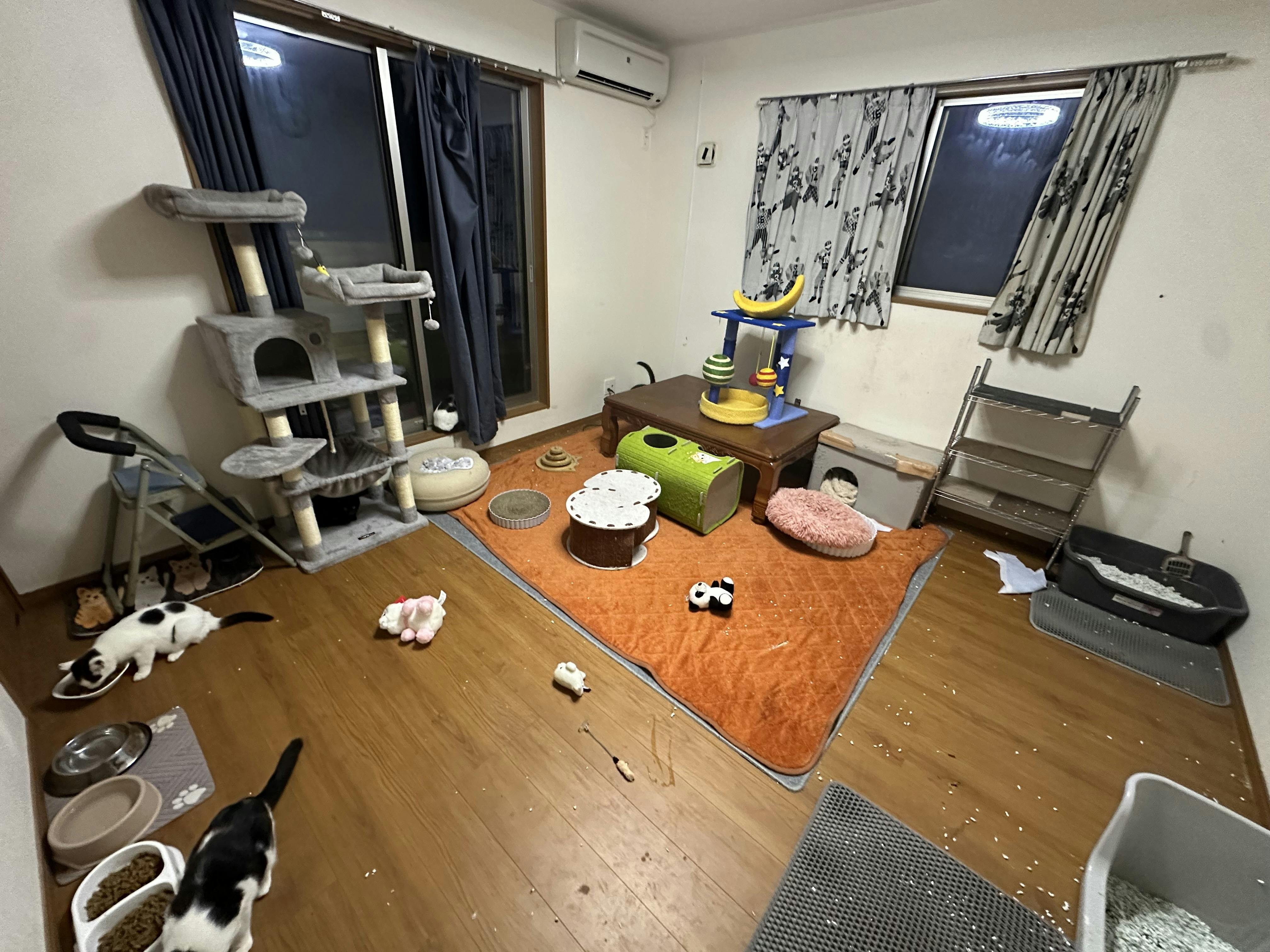 上の部屋に保護した12匹、昨日また新たに1匹をミカさんが捕獲して連れて来たので13匹に