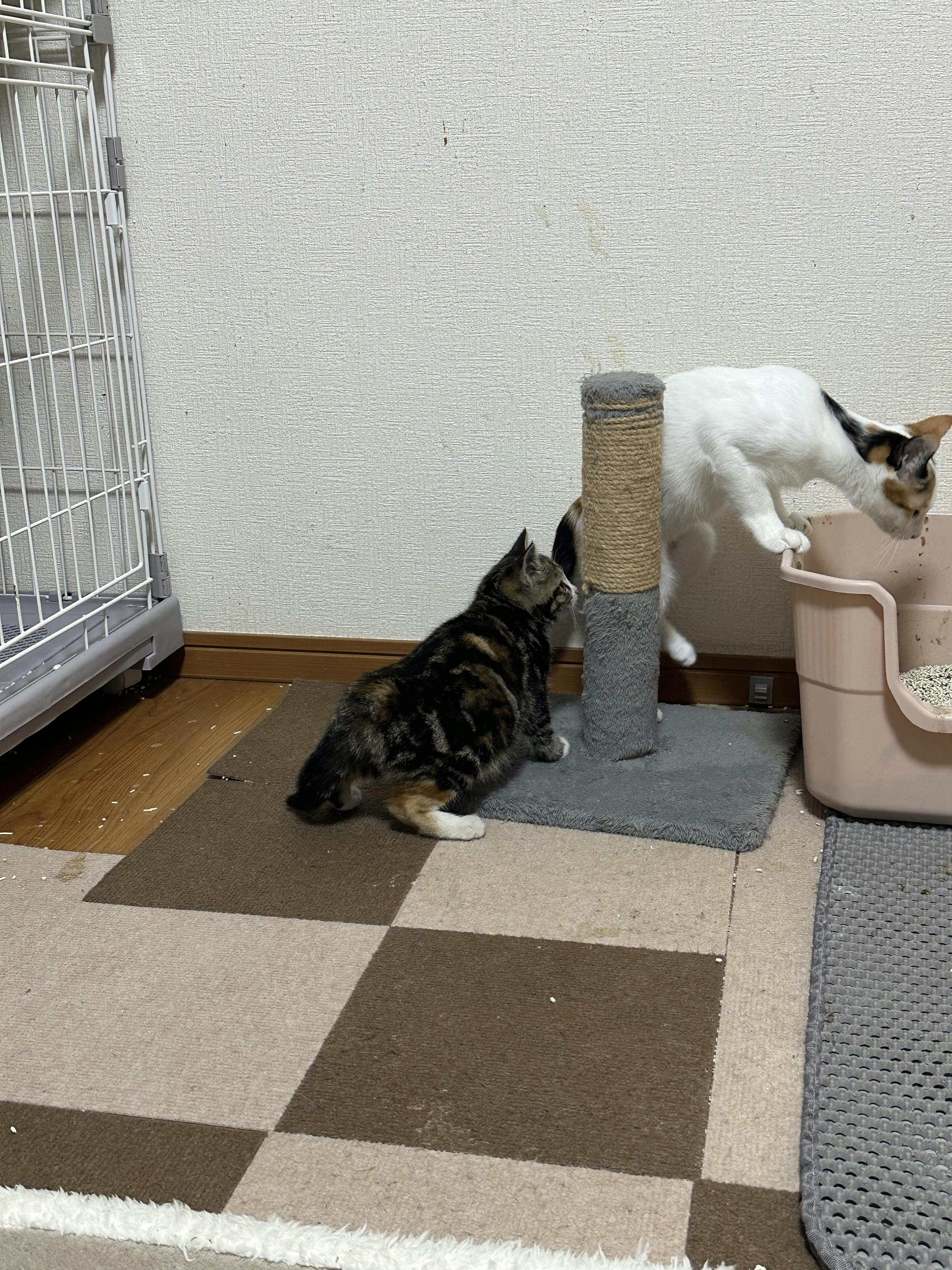 成猫が近づくとシャーシャーだけど少し大きい子猫が近づくとお話してました