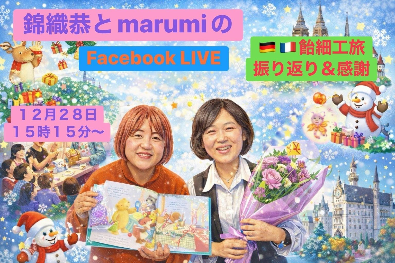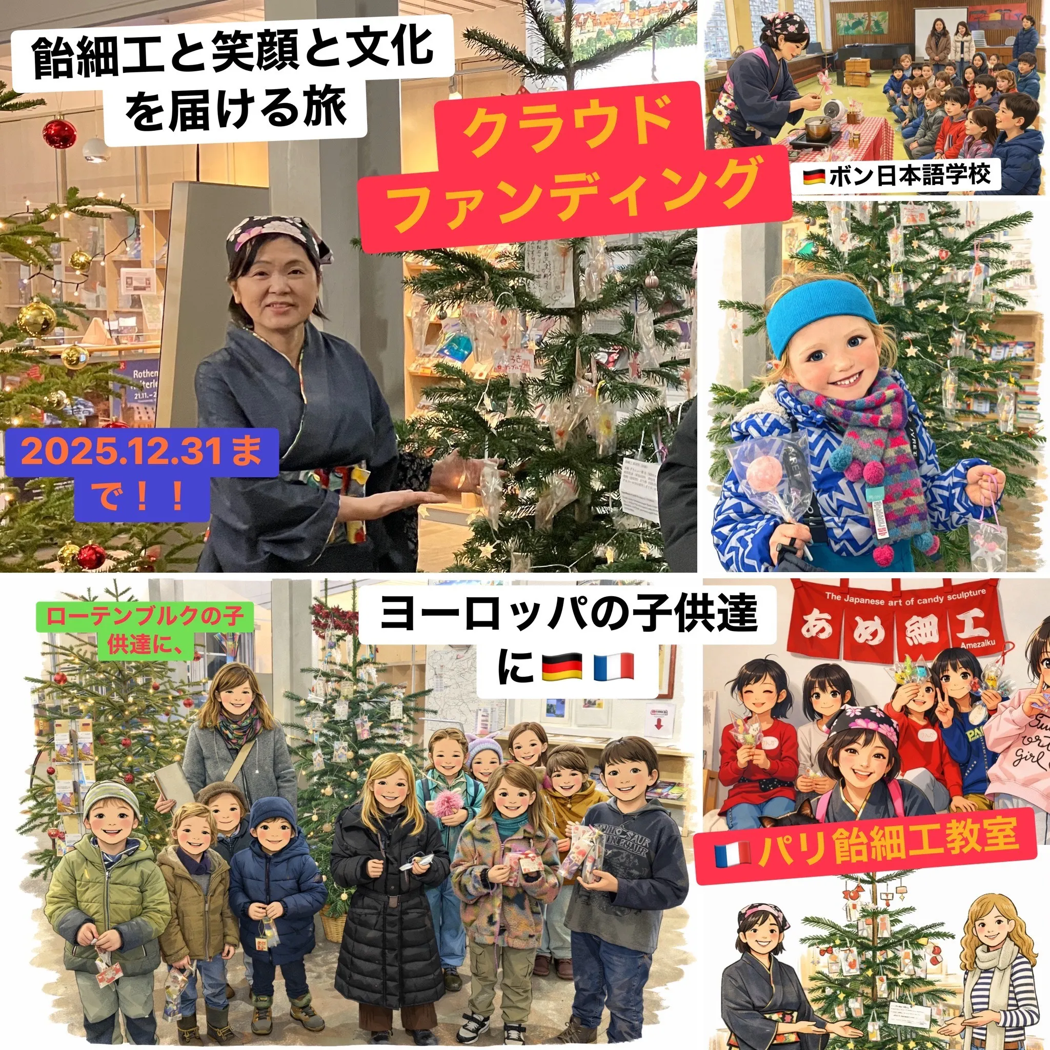 2025/12/28 08:57クラウドファンディングのご支援、応援本当にありがとうございました。皆さまのおかげでドイツ・フランスでの飴細工の旅を無事に終えることができ、たくさんの笑顔と出会うことができました。感謝の気持ちを込めて、旅の振り返りとお礼を Facebook LIVE でお話しします。12月28日15時15分〜よかったら、LIVE見にきてね。聞くだけ・途中参加も大歓迎です。 もっと見る