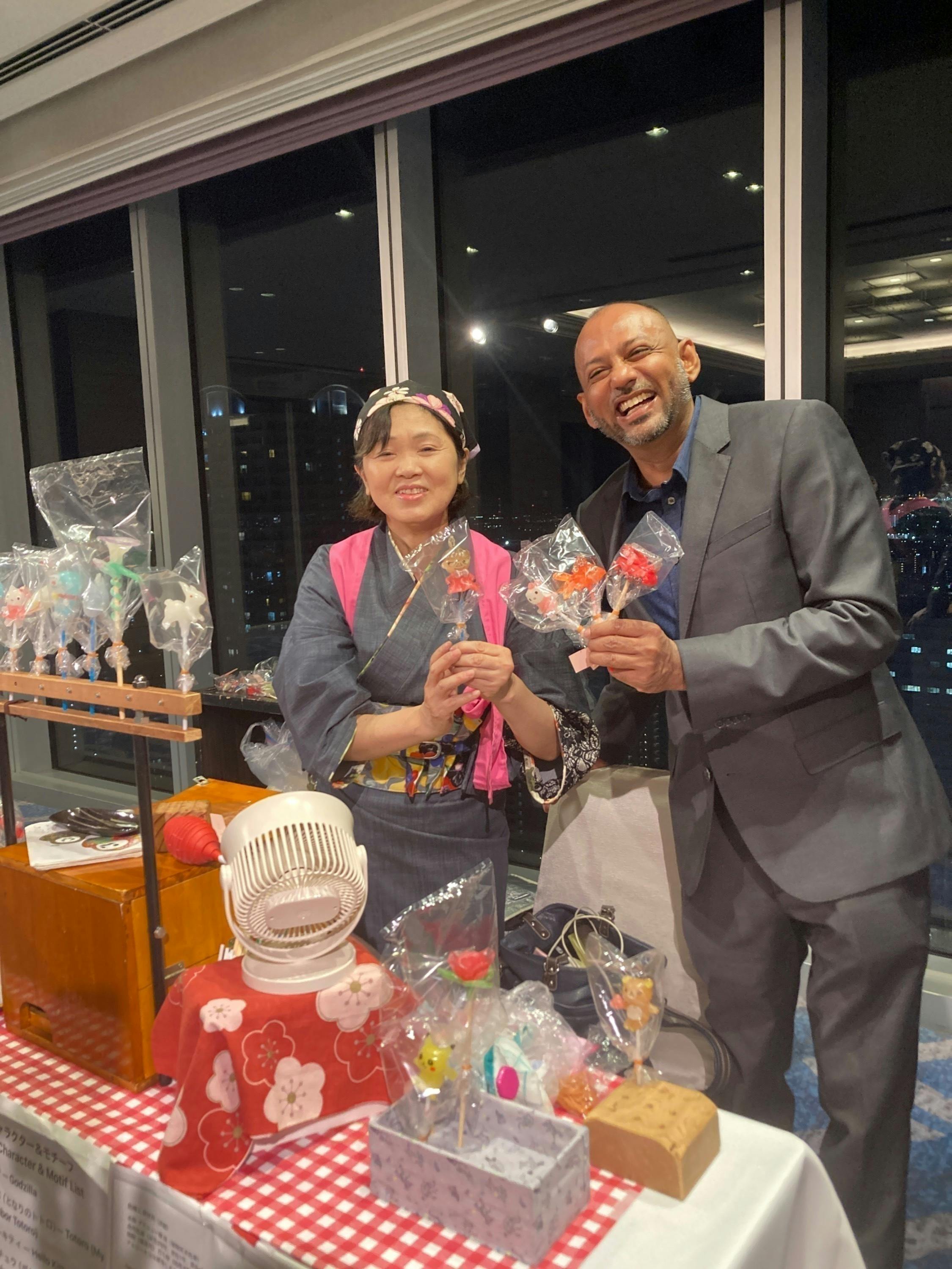 かつて日本で飴細工を学んだ生徒さんと再会し、