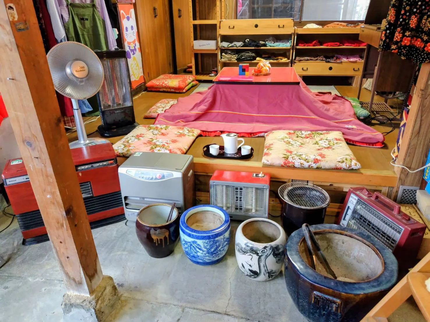 皆様のご支援の一部は早速、香川の古民家にありがちな冬のすきま風に打ち勝つ燃料に変えさせていただきました。お陰様で薪ストーブは未設置なものの、既設の小さなエアコンに加えて様々な暖房器具を配置して温かい店舗にお客様をお迎えする準備ができました。写真がこの冬の店舗温め部隊です。かなりレトロな器具もありますが、それも楽しんでいただける店舗のはず…か?…と期待しています。