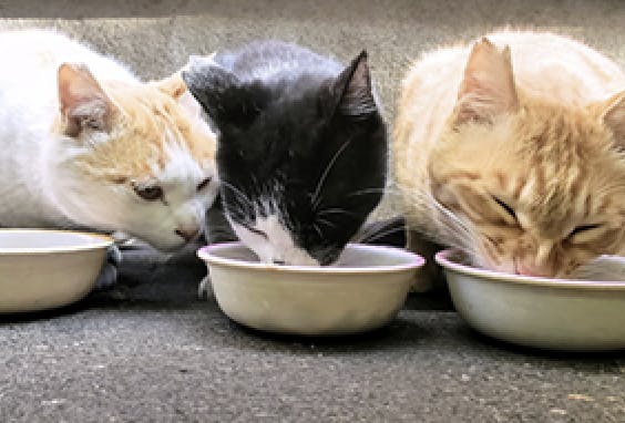 野良ねこたちが、寒さや感染症に負けない体力をつけるために、お腹いっぱん食べさせてあげたい。その思いで日々、お世話をしています。