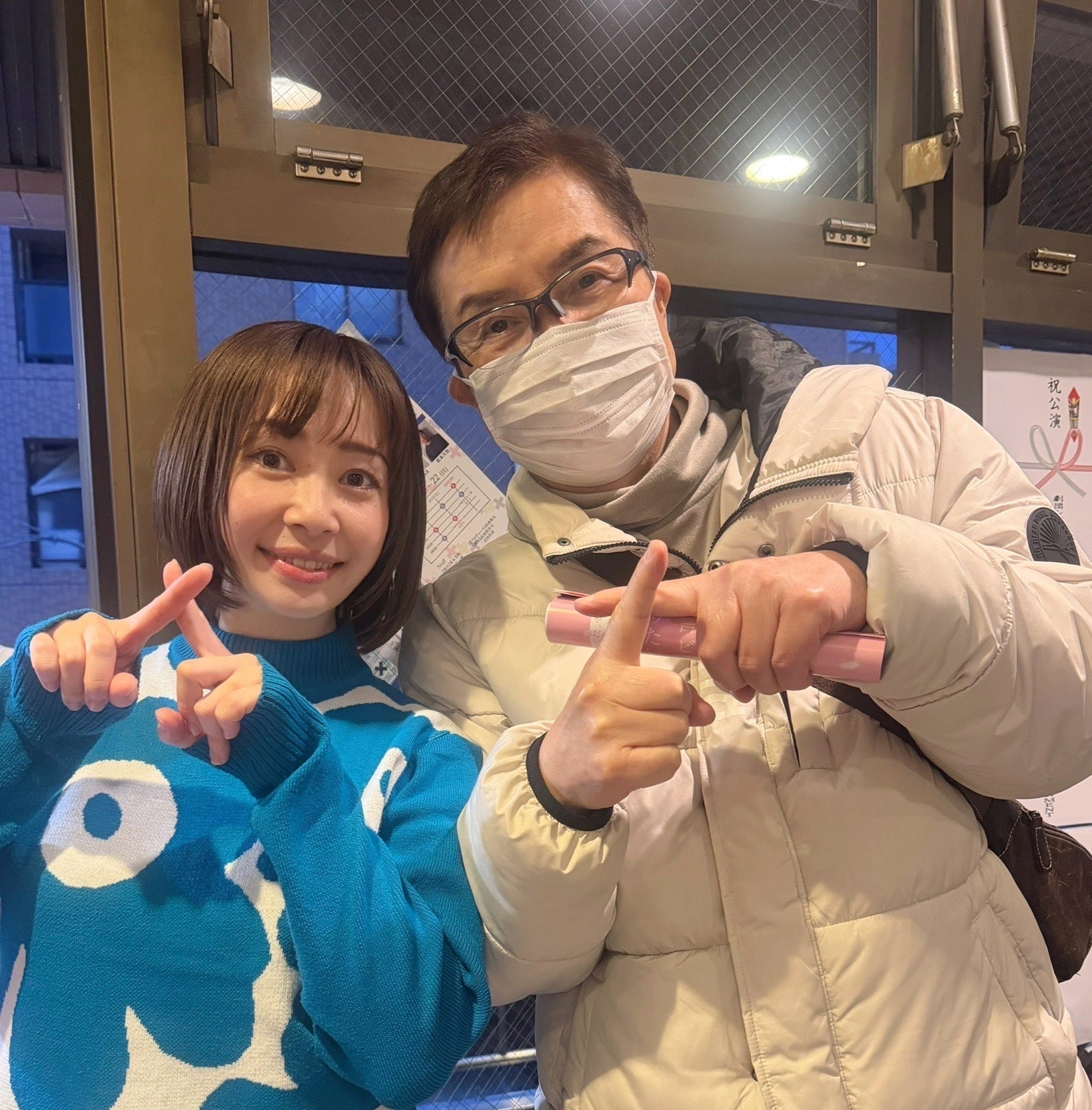 (主演を務める西尾まうさんと、原作の飯島謙一教授)