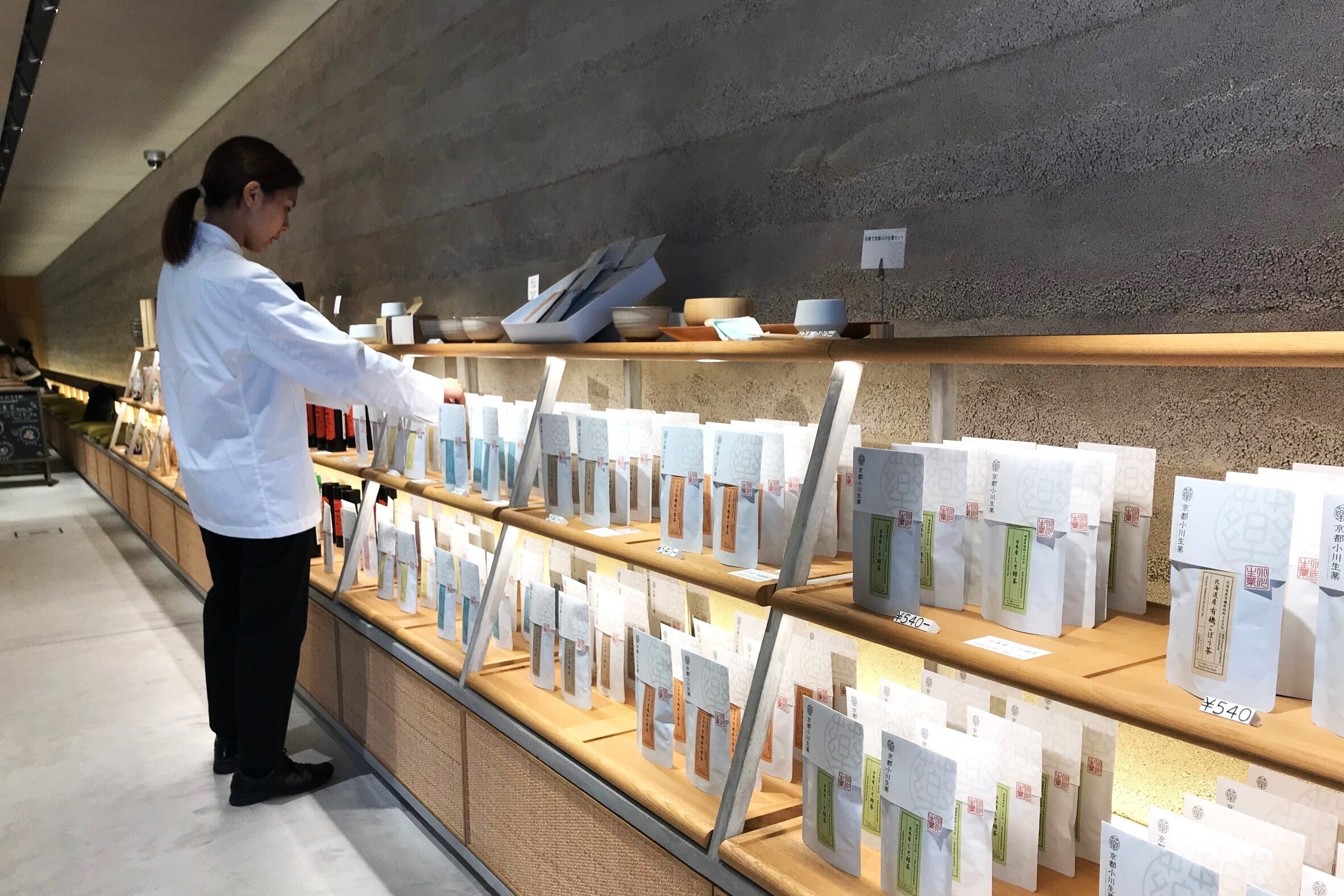 高品質な生薬を用いた健康茶を販売。1階カフェではお茶菓子と一緒に味わえます。