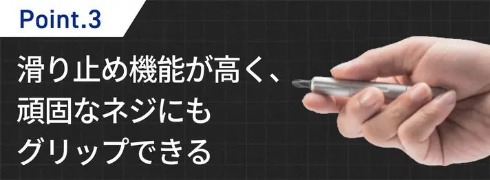 マグネティック・ファストスワッピングで、ビットの交換が簡単に行え、内蔵された磁石によりスムーズで片手でも操作できます。