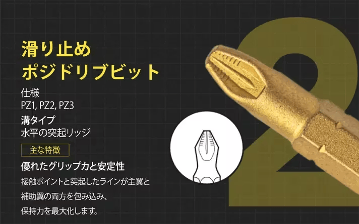 ポジドライビット – 強力なグリップ力でプロフェッショナルな作業