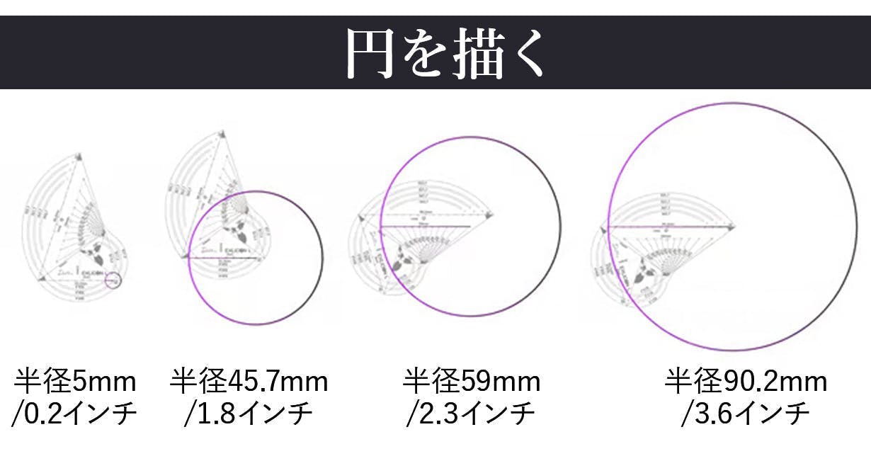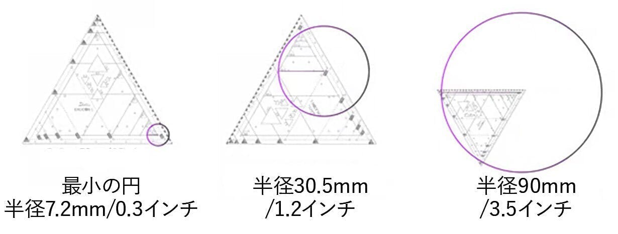 三角形の定規で最大半径90cmの円を描くことも可能です!
