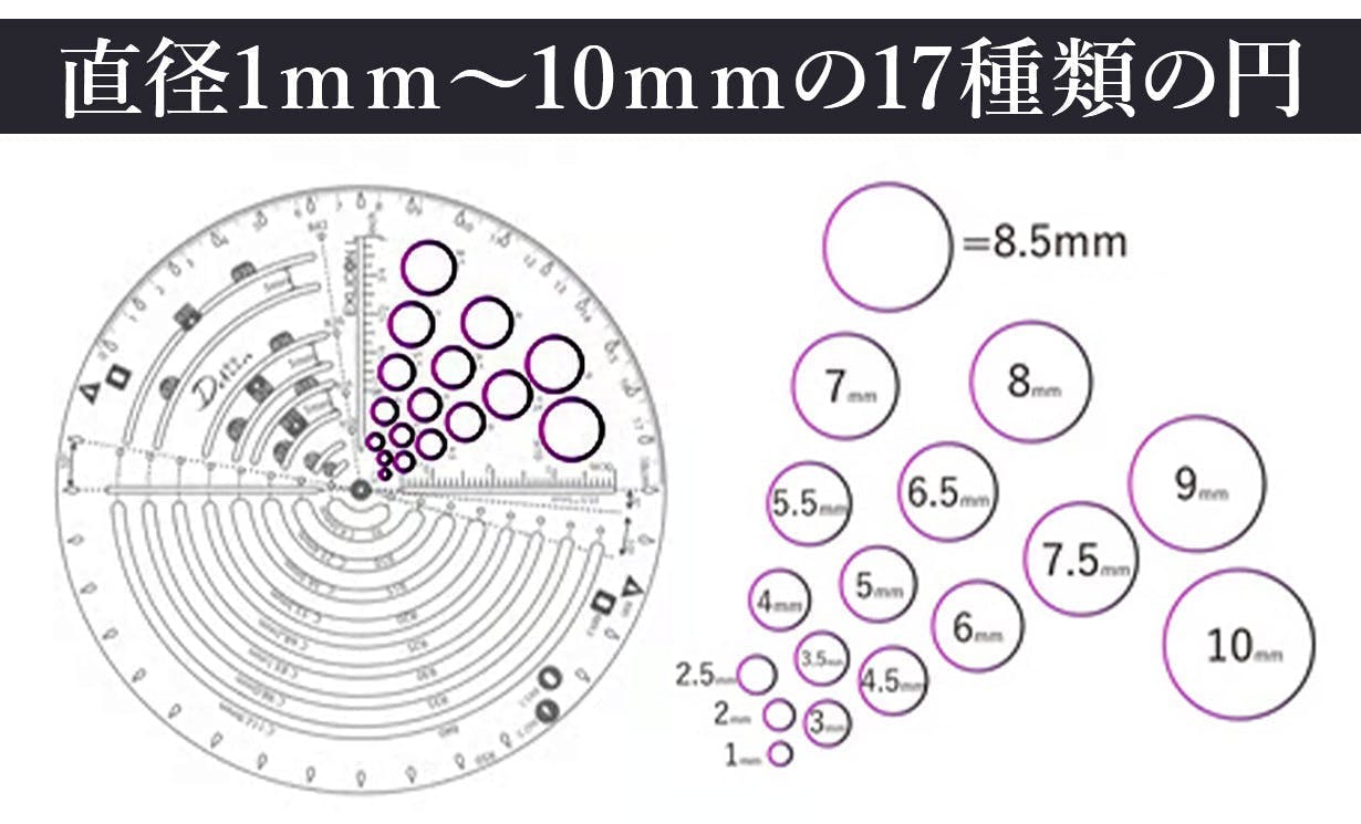 直径1mm~10mmまでの17種類の穴が既にセッティングされています。