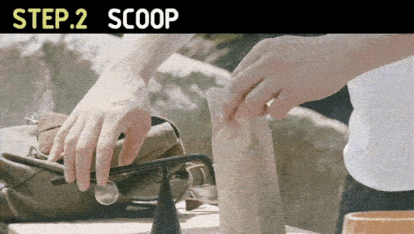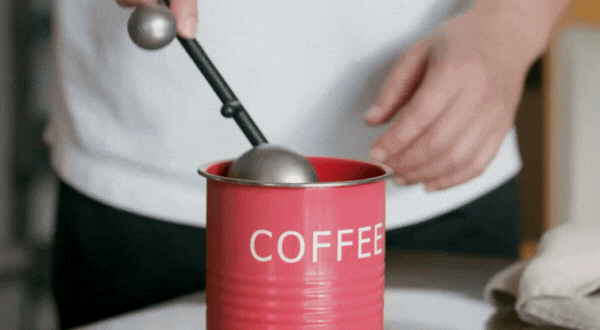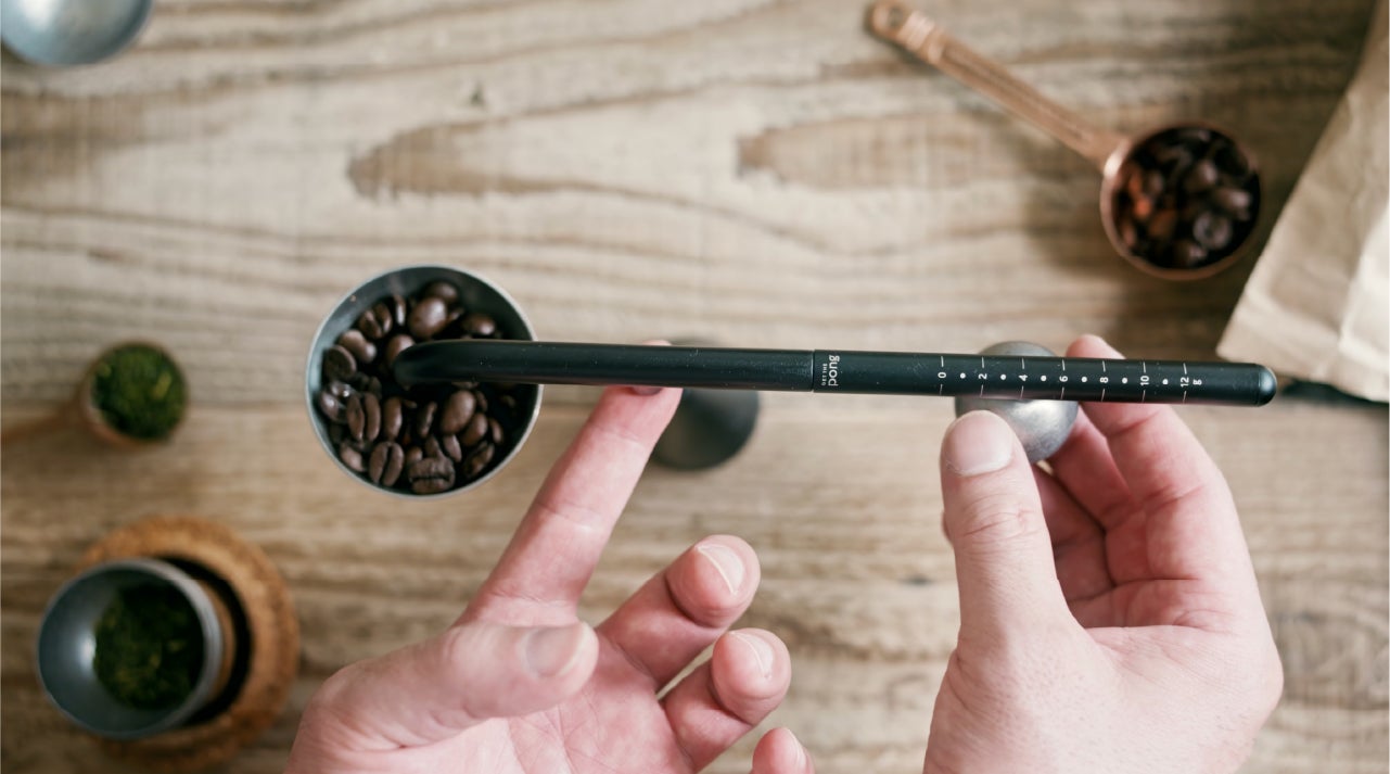 VAKKAの長いハンドルでコーヒー豆をすくうだけ。