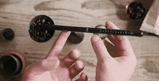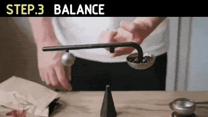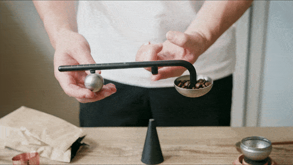豆をVAKKAにのせて、バランスが取れるポイントを見つけましょう。