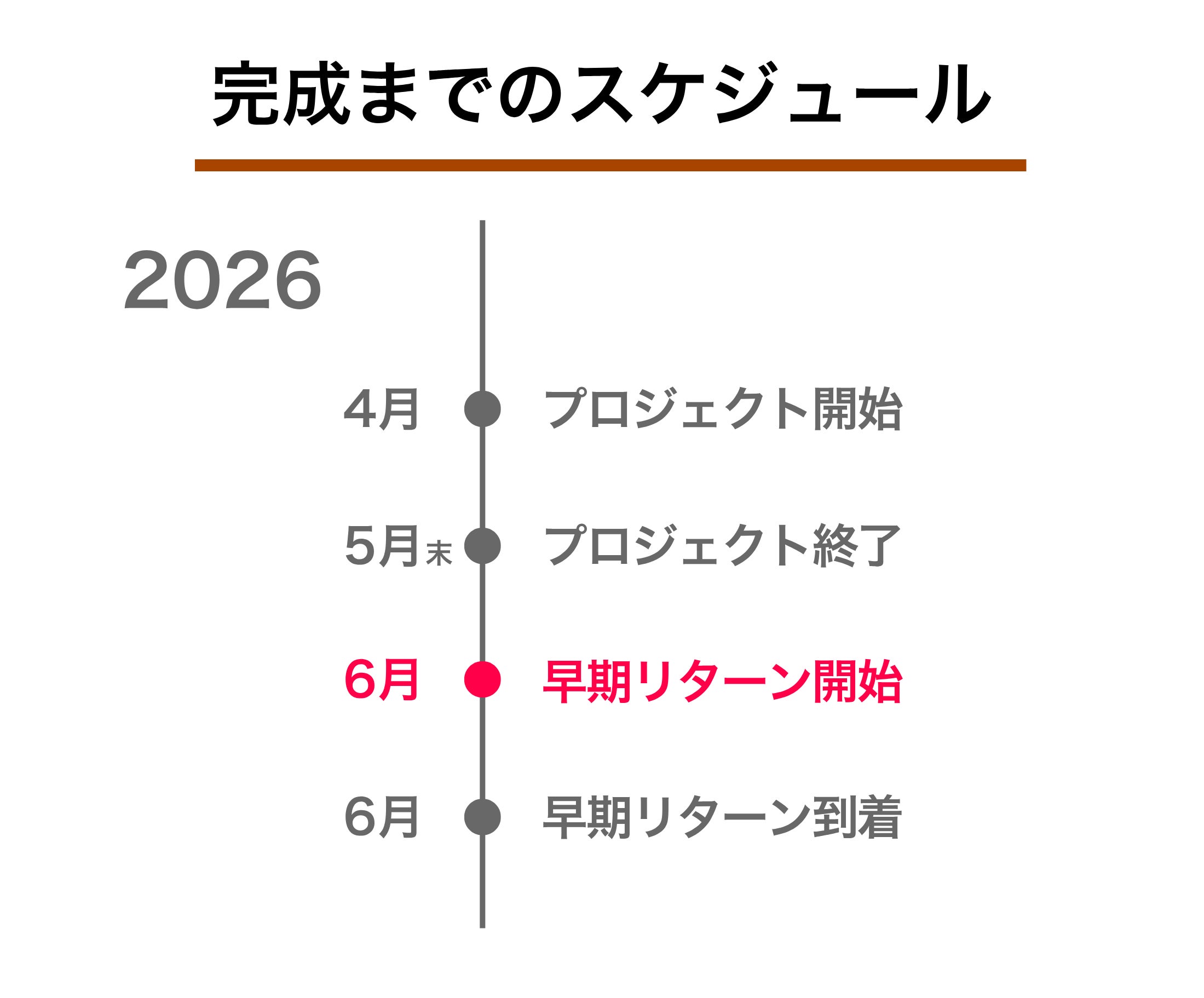 ※本文中に記載させていただいたスケジュールは、あくまでプロジェクト公開時点の予定です。支援の性質上、配送遅延のおそれがございます。
