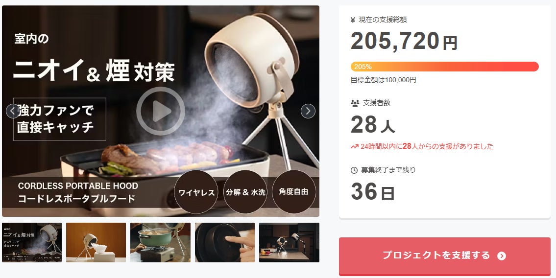 この度は「煙・油・ニオイを瞬時に強力吸収する場所を選ばないコードレス換気扇」に支援頂き誠にありがとうございます!