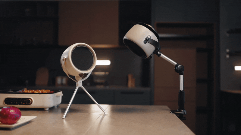 本体サイズは185.3 × 134.5 × 178.9mm(スタンド除く)と非常にコンパクト。キッチンの作業台やテーブルに置いても圧迫感がなく、ワンルームや限られたスペースのキッチンでも無理なく使用できます。据え置き型換気扇のように設置場所を確保する必要がないため、日常的に使いやすい点は大きな魅力です。使わないときも邪魔にならず、気軽に出し入れできるサイズ感も嬉しいポイントです。
