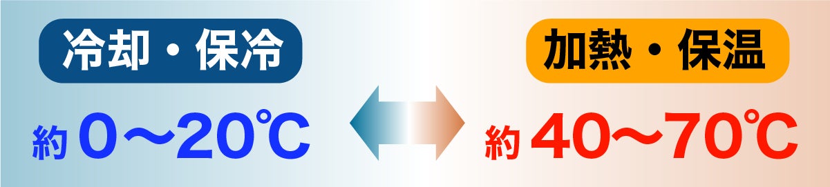 冷却・保冷(約0~20℃)と、加熱・保温(約40~70℃)を切り替えられる冷温両用タイプ。