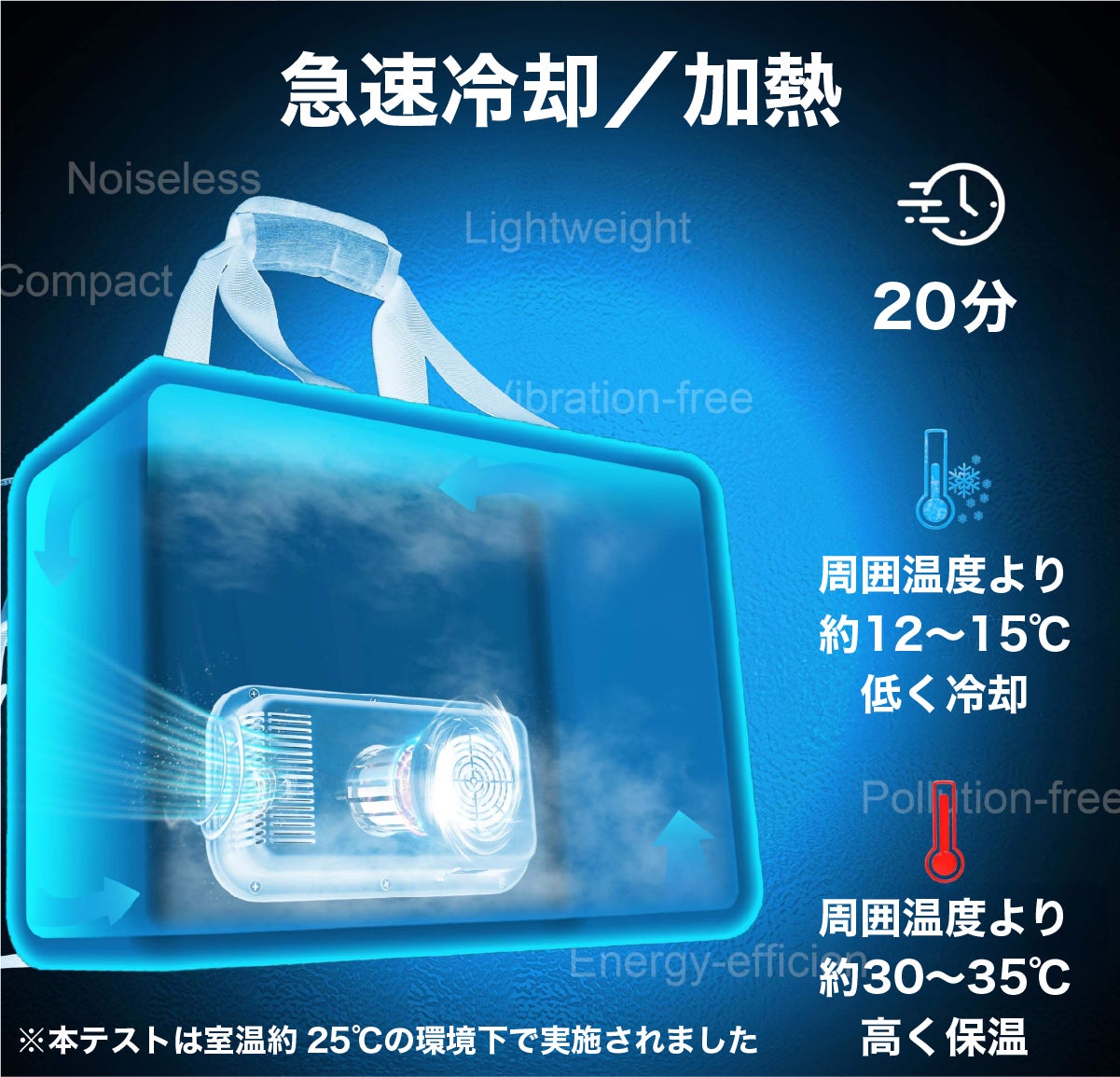 ペルチェ式を採用することで、一般的なコンプレッサー式に比べて軽量かつ静かな設計を実現しました。