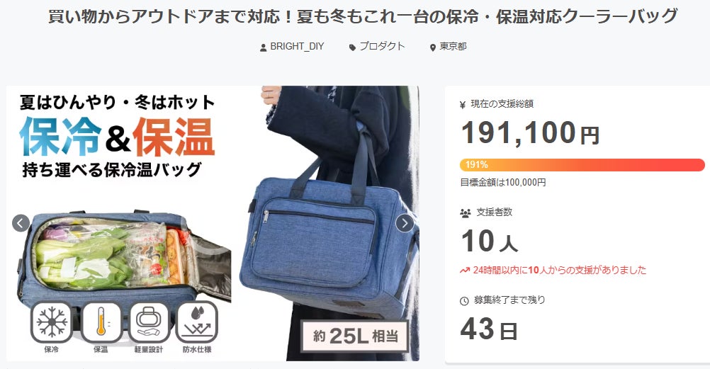 この度は「買い物からアウトドアまで対応!夏も冬もこれ一台の保冷・保温対応クーラーバッグ」に支援頂き誠にありがとうございます!
