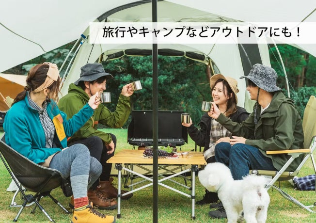 製品はコンパクトで軽量な設計になっており、首に掛けたり部屋に吊るしたりして使用できます。ブラックとホワイトの2色展開で、中央にはLEDライトが搭載され、動作状況もひと目で確認可能です。一度の充電で長時間使用でき、屋内だけでなく、キャンプや釣り、アウトドア活動にも最適です。