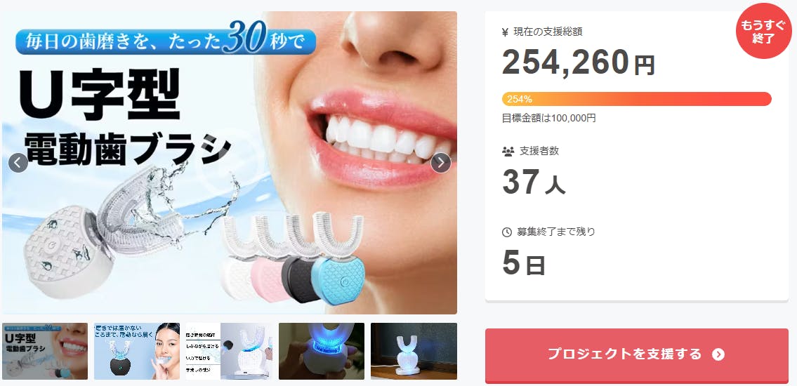 プロジェクト終了後、「毎日のケアを効率的に。音波振動ですき間までしっかりケア!次世代スマート歯磨き」をCampfire特別価格で入手することはできなくなりますので、ご支援がまだの方、追加支援をご検討の方はお急ぎくださいますようお願い申し上げます。