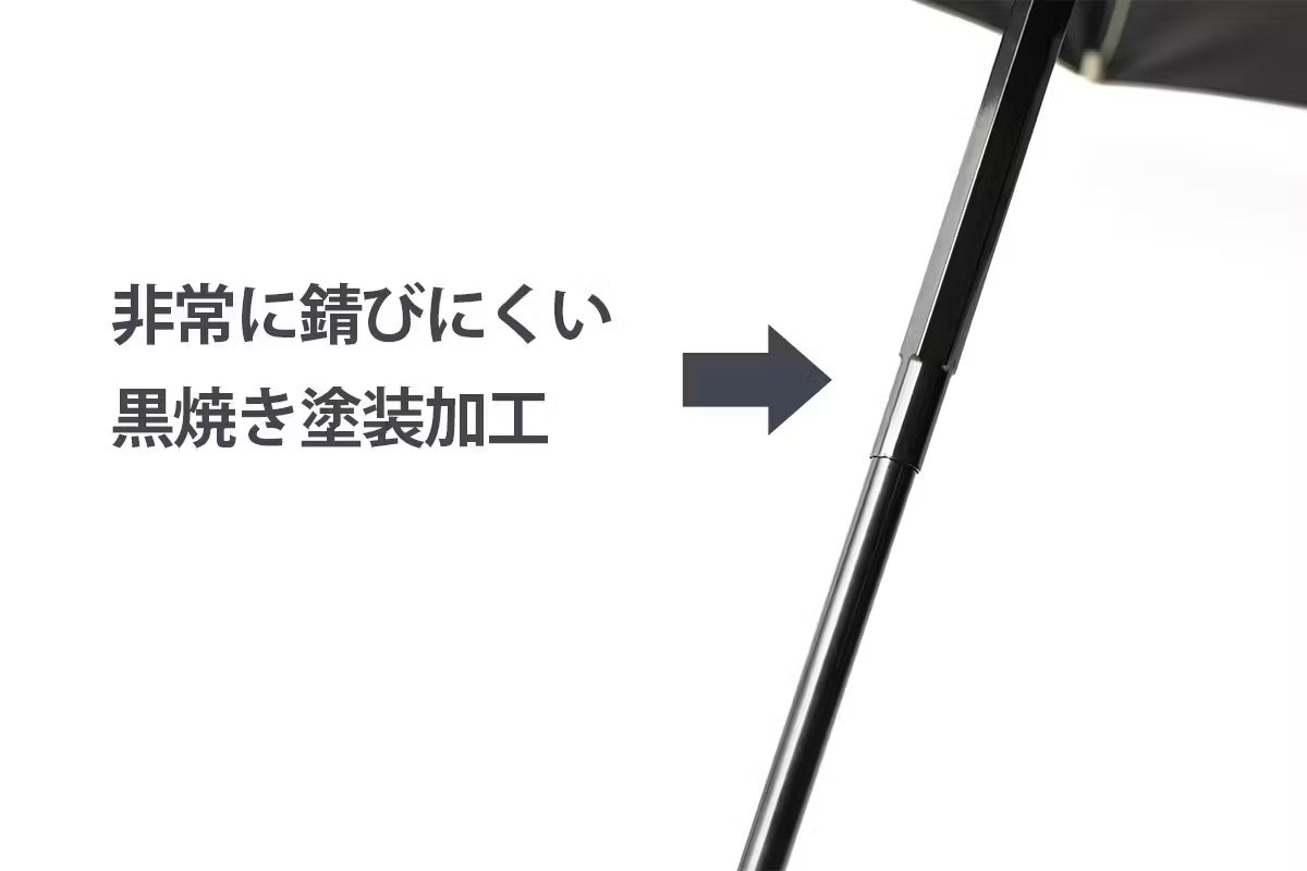 傘は雨に濡れたまま放置されることが多く、特に金属製の骨組みや持ち手部分は錆びやすい環境にあります。スマート傘はその弱点を克服するため、黒焼き塗装加工を採用しました。この特別な塗装によって防錆性が飛躍的に向上し、長期間使っても劣化しにくく、見た目の美しさも維持できます。結果として、耐久性が高まり、コストパフォーマンスにも優れた傘となっています。