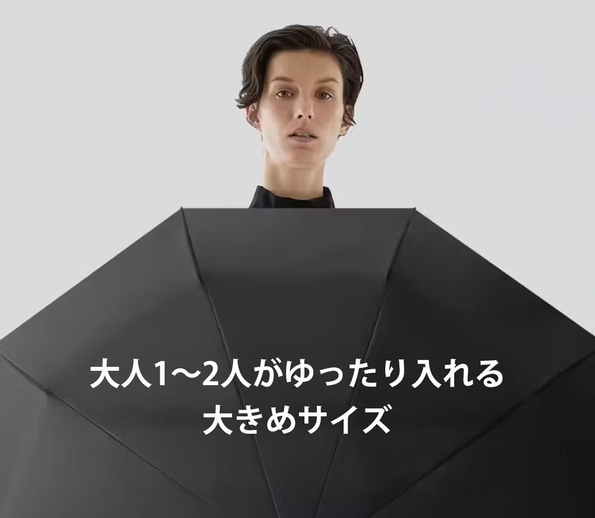 スマートアンブレラの魅力の一つが、そのワイドサイズ設計。直径104cmの大きさは、一般的な傘よりも広く、二人で並んでもしっかり日差しをガードできます。日差しを避けるために、それぞれが別々の傘を持つ必要はもうありません。一つの傘をシェアしながら、肩を並べて歩く時間も、より特別で心地よいひとときに変わります。