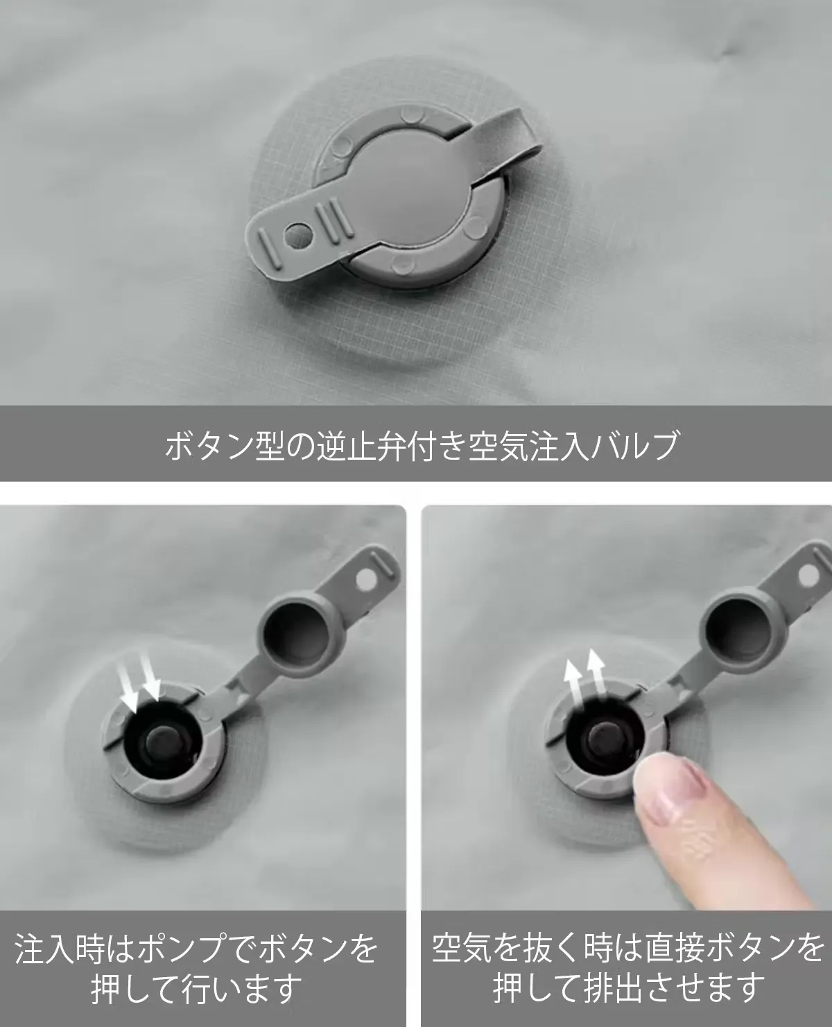 バルブ内にある逆止弁ボタンを押すと5秒で空気を排出できます。