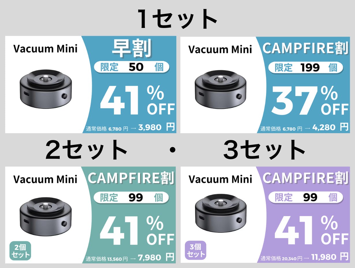 CAMPFIREでの発売を記念して、お送りする際の配送料は全て当社が負担します!お得なこの機会にぜひVacuum Miniを使用してQOLを上げてみませんか?