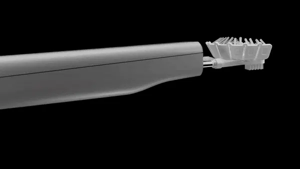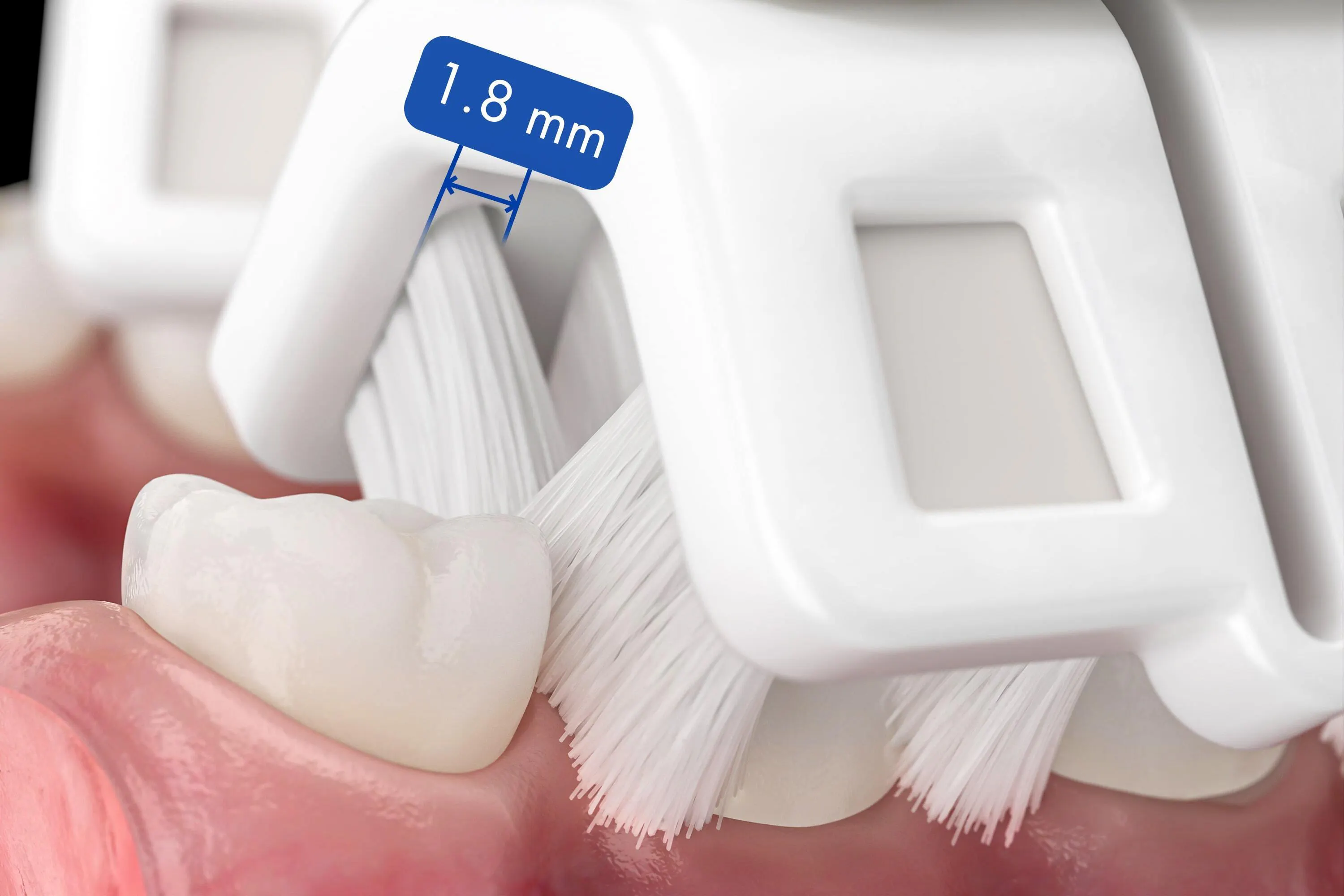 「AutoDent」のブラシヘッドは、17本のマイクロブラシを組み合わせた合計12,900本の毛が、歯を包み込むようにデザインされています。最適な圧力で優しく効率的に汚れを除去します。