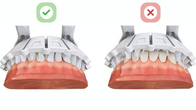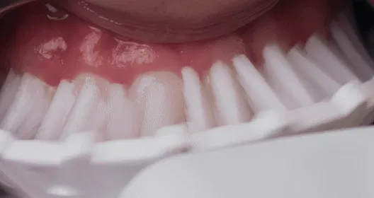30秒待ち、ブラシが停止したら下顎に当て、再度作動させます。