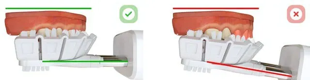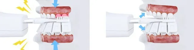 ※噛まずに反対側の顎でブラシヘッドを軽く支えるだけで十分です。