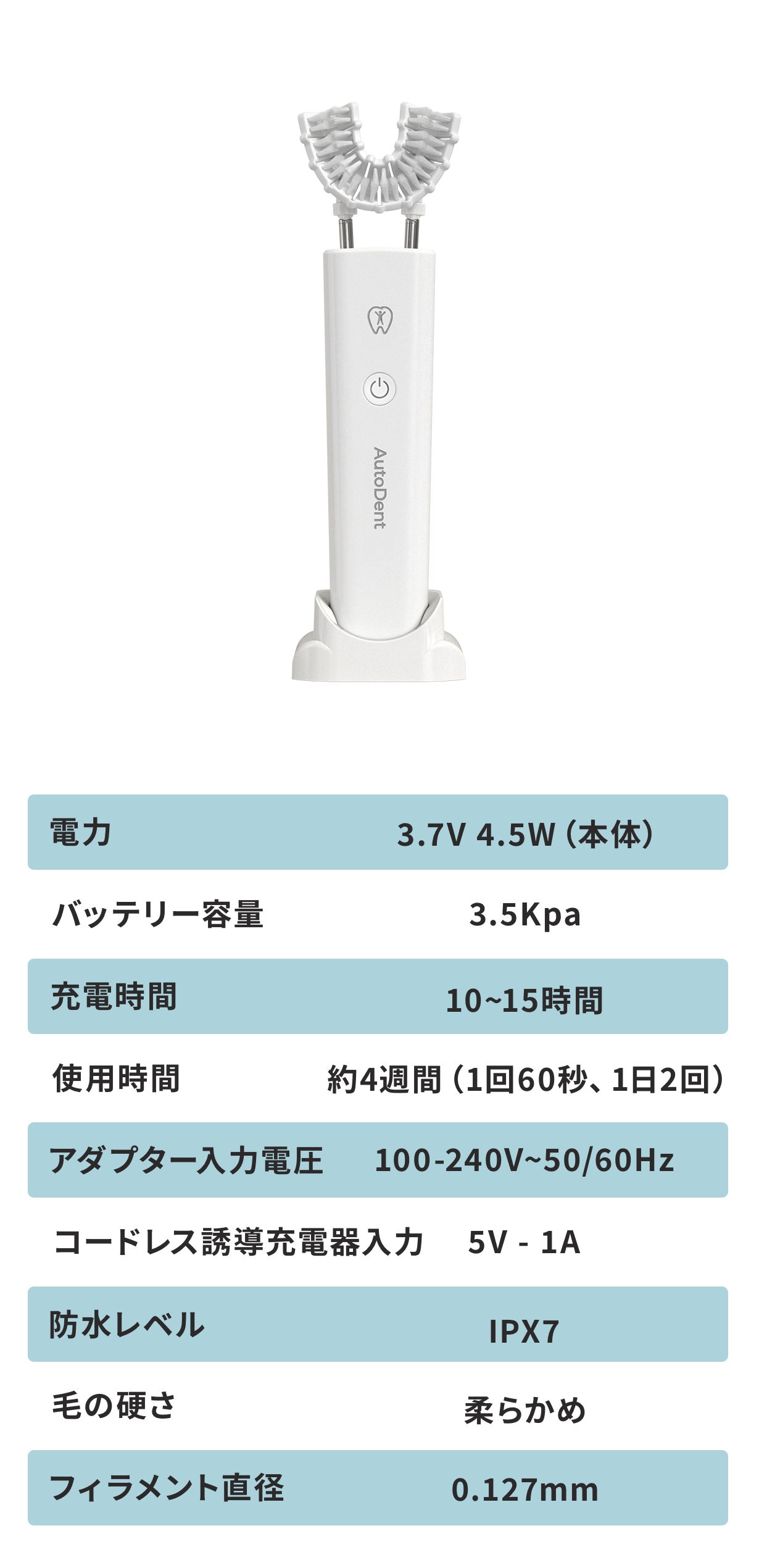 A:ブラシヘッドに血が付いている場合、歯茎の病気や感染症がある可能性があります。これは、「AutoDent」が以前の歯ブラシでは十分に清掃されていなかった箇所を磨くためです。数日後には出血が止まるはずです。止まらない場合は、歯科医に相談してください。