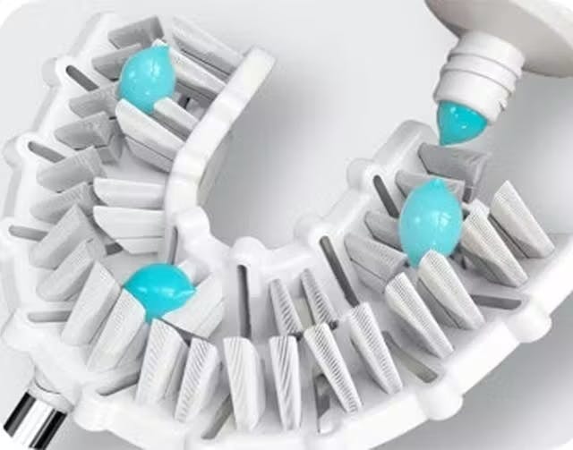また、AutoDentは少量の歯磨き粉でしっかりケアできる点も特徴です。歯磨き粉をブラシの3箇所に軽くつけるだけで全ての歯をカバーできるため、経済的で環境にも優しい仕様になっています。振動と回転の動きが効率的に汚れを落とし、無駄なく効果的な磨き上げが可能です。日々のコストを抑えつつ、しっかり清潔を保ちたい方に最適です。