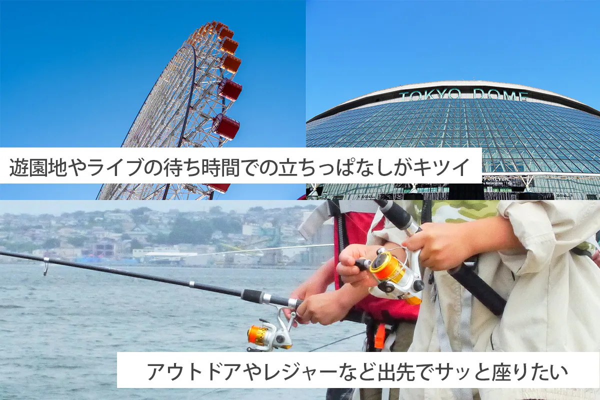 見た目はコンパクトですが、そのタフさは予想以上。どんなシーンでもしっかり座れる使い心地でご使用いただけます。