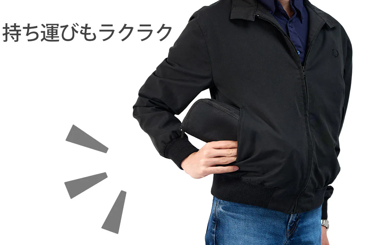 ポケットやかばんに入るスリムなコンパクトさで重さも約300gの軽量設計。