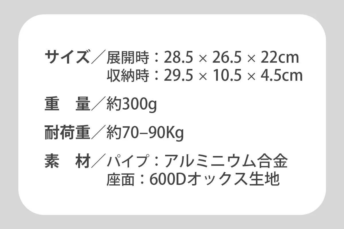 組み立てが簡単で、どこでもすぐに座れる便利さが魅力です。耐荷重90kgで、子どもを抱っこしたままでも使える安心設計。軽量で持ち運びもラクラク、アウトドアや日常のちょっとした休憩に最適なアイテムです!